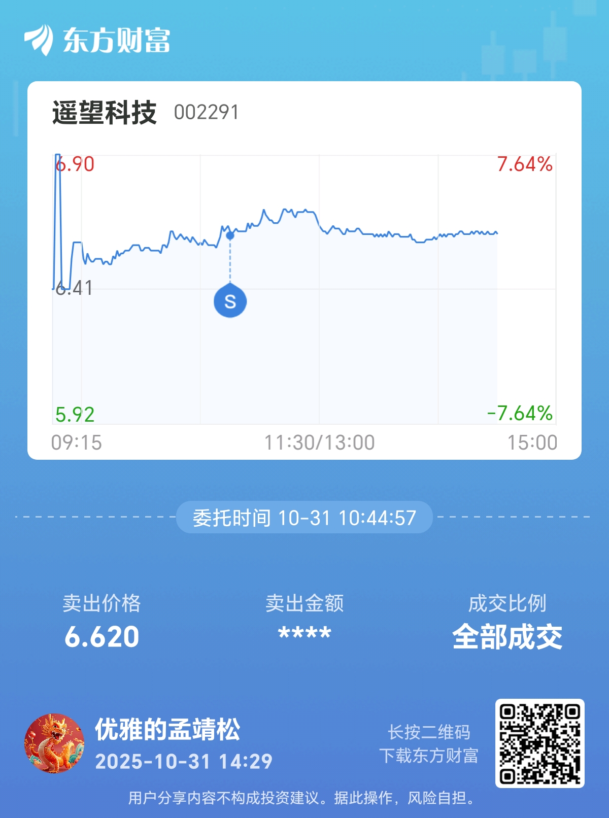 $遥望科技(SZ002291)$ 溜了,下周再看看