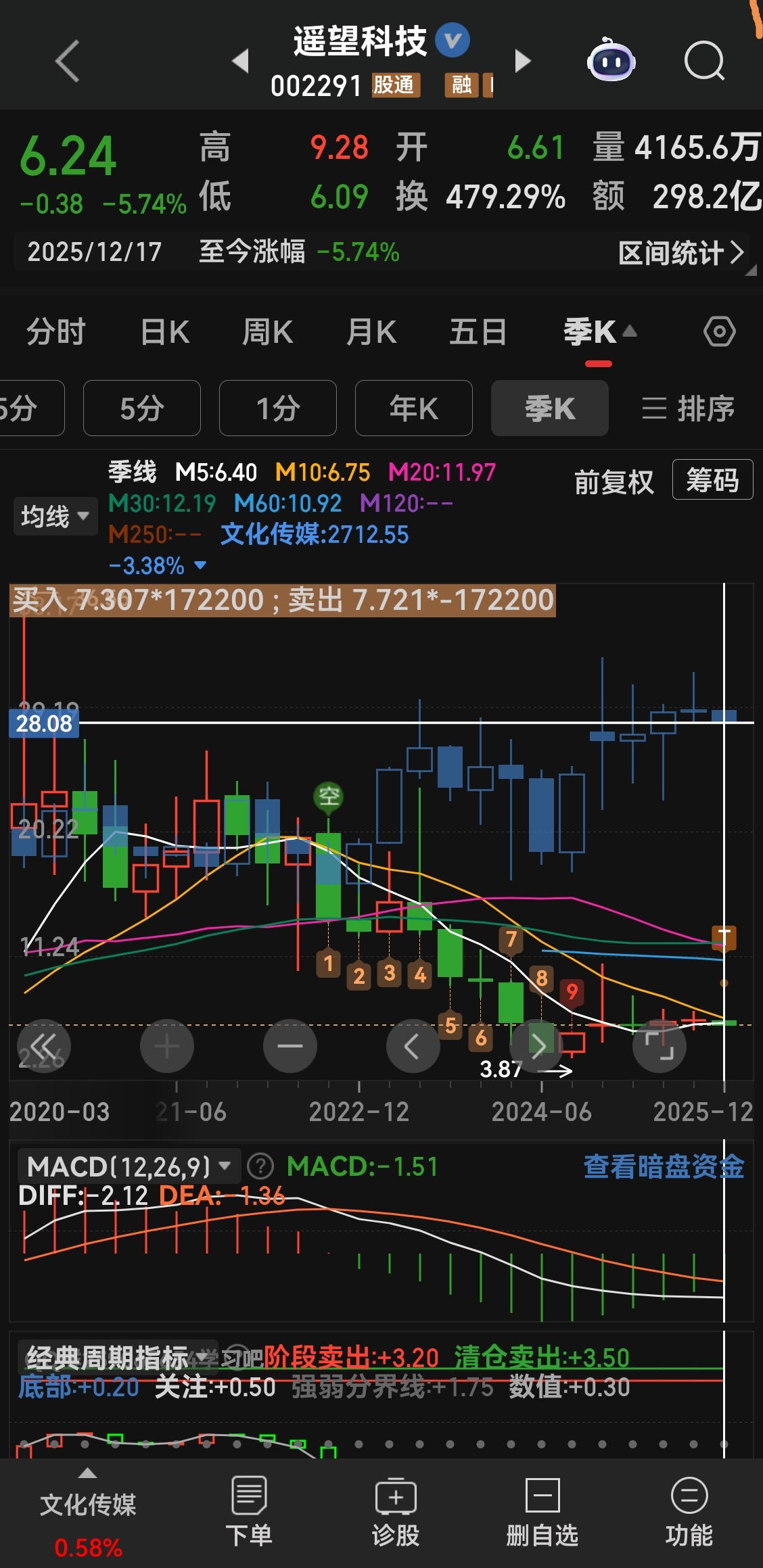 $遥望科技(SZ002291)$ 昨日6.94建仓20w,今日还不启动?来吧里打个卡。坐等启动。