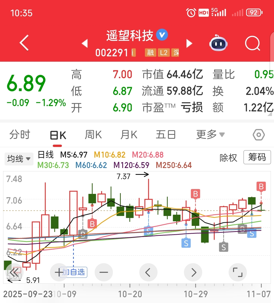 $遥望科技(SZ002291)$ 早上买回昨天卖出的筹码,看来这货会成为今天手上最不给力的标的啊
