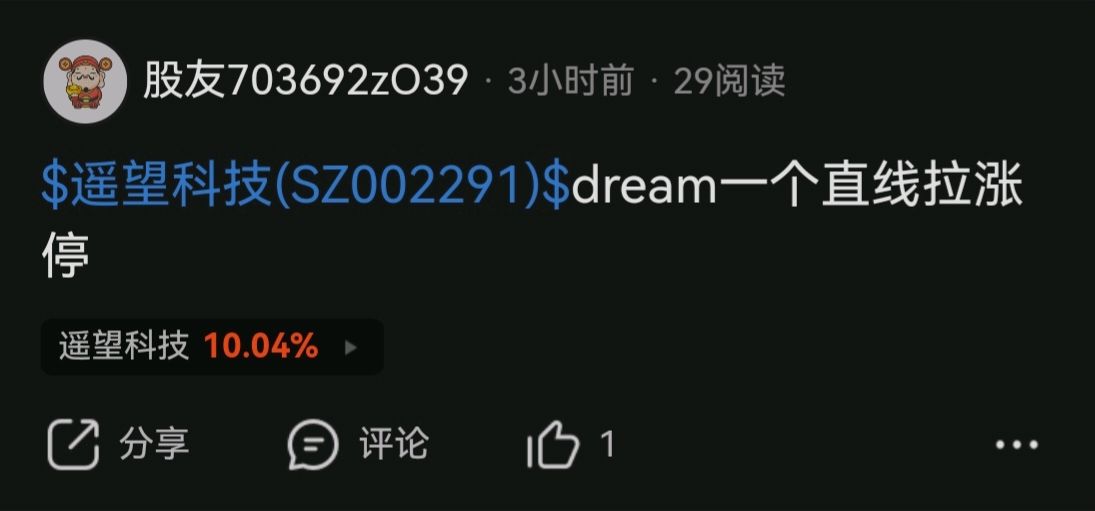 $遥望科技(SZ002291)$ 谢谢主力 幸福上了