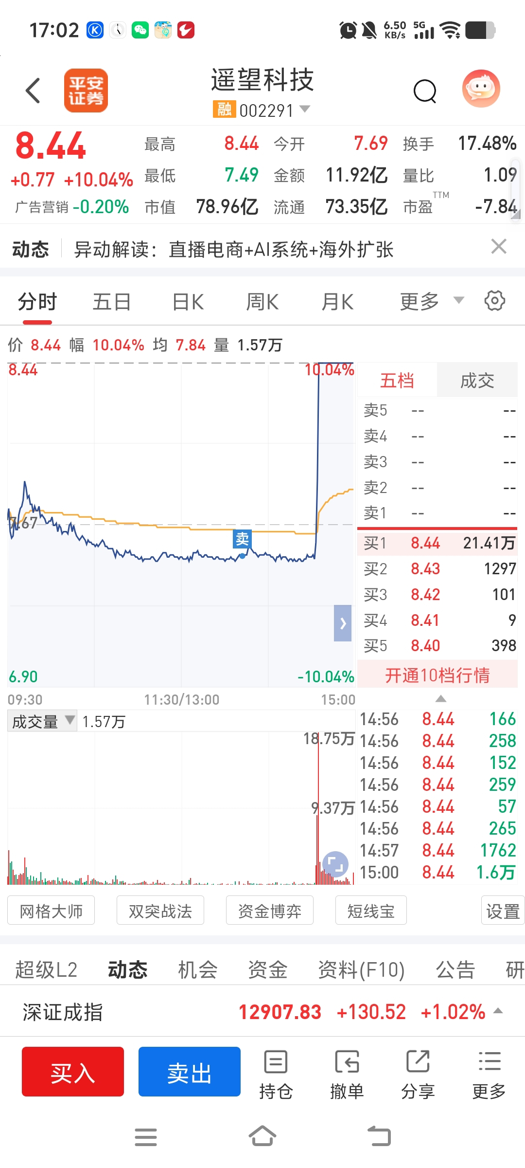 $遥望科技(SZ002291)$ 洗的就是我,真给力