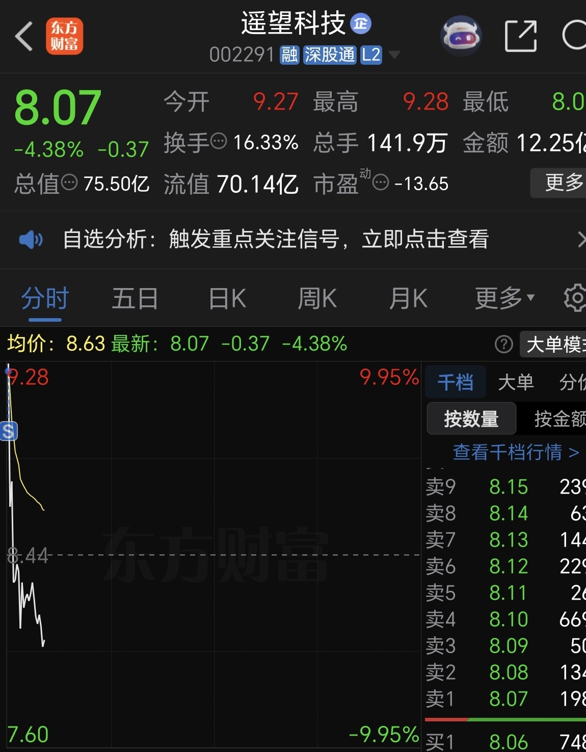 $遥望科技(SZ002291)$ 还好跑得快,股市就是博弈啊。