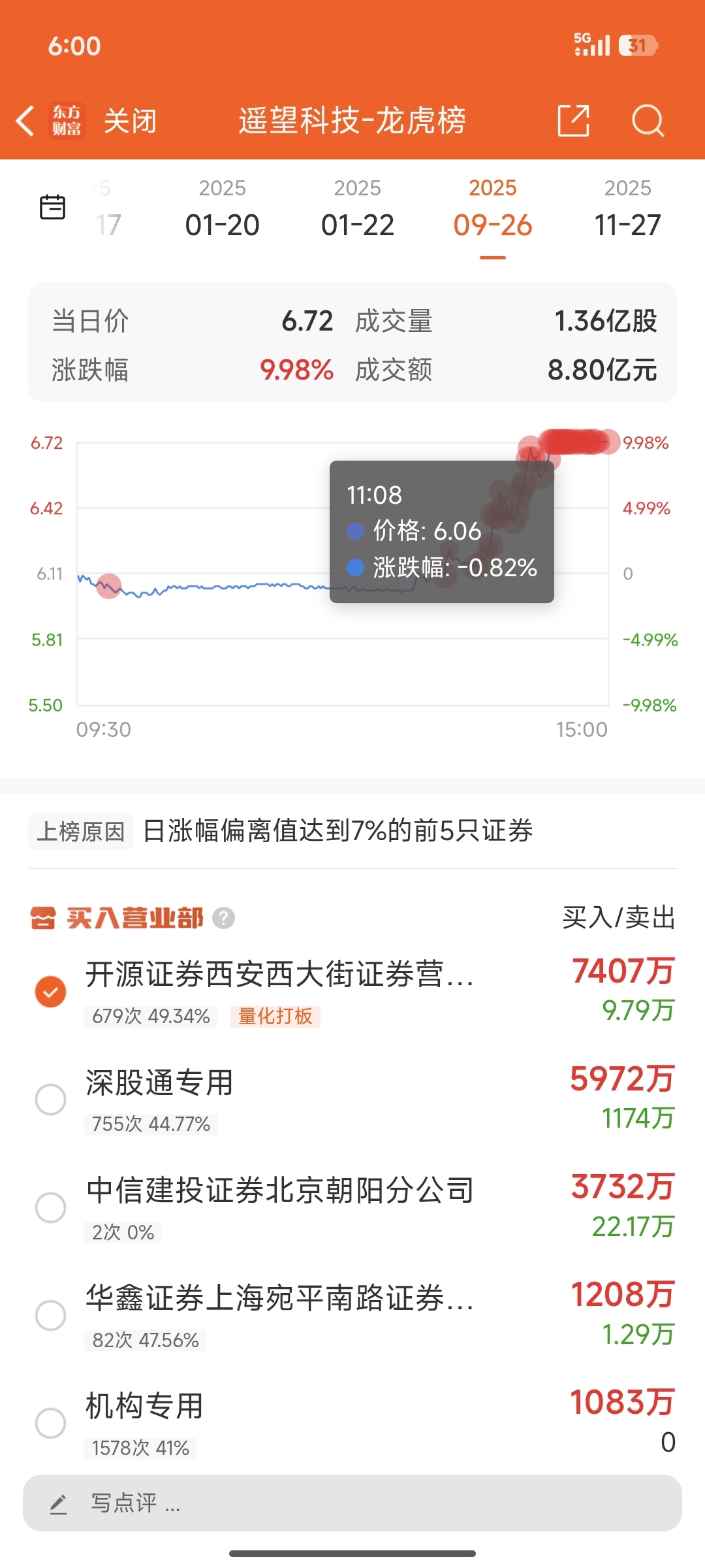 $遥望科技(SZ002291)$ 开源9月26日就买入了,赚一半了,还有一半没卖吧,发个帖子还被删????