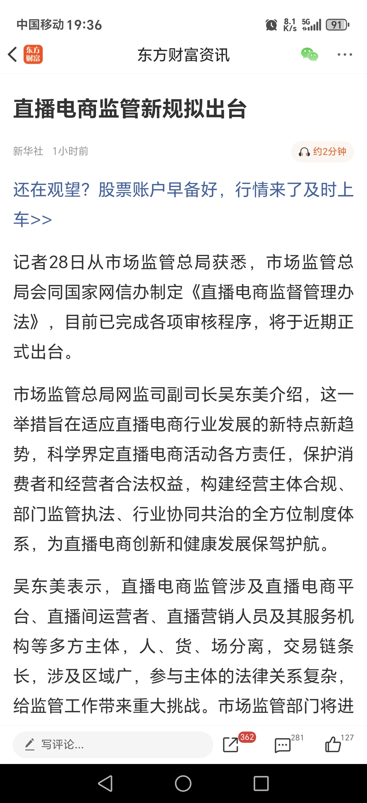 $遥望科技(SZ002291)$ 直播新规妥妥的利好遥望科技,头部电商就是龙头!遥望=妖王!每个大牛股起步都是分岐转一致走出来大牛!分歧越大涨幅越高!12月消费是主线加持