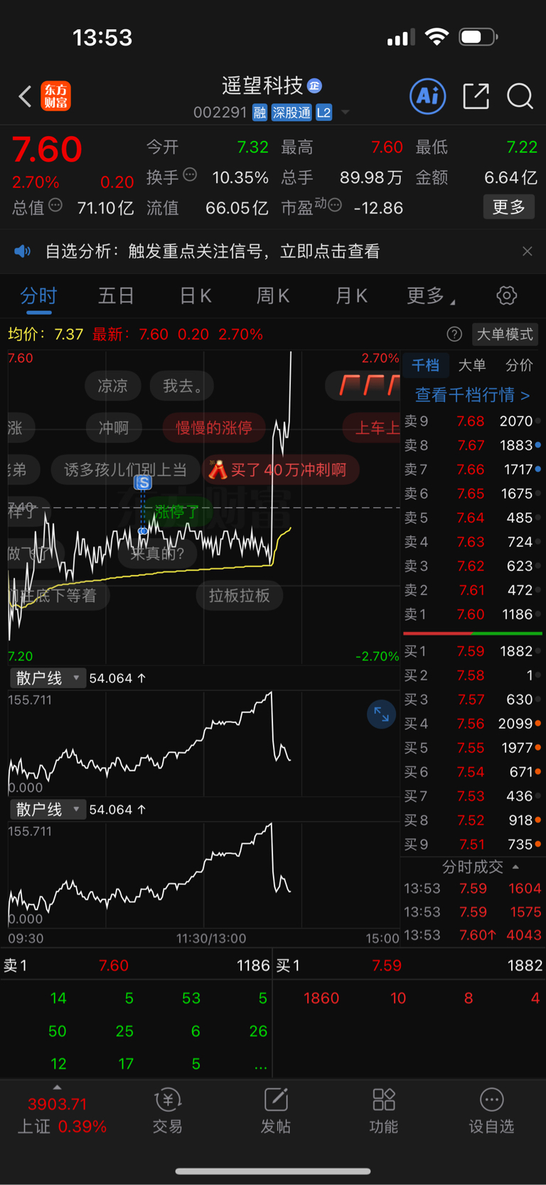 $遥望科技(SZ002291)$ 不想玩了 3天亏了7个点 一卖就飞