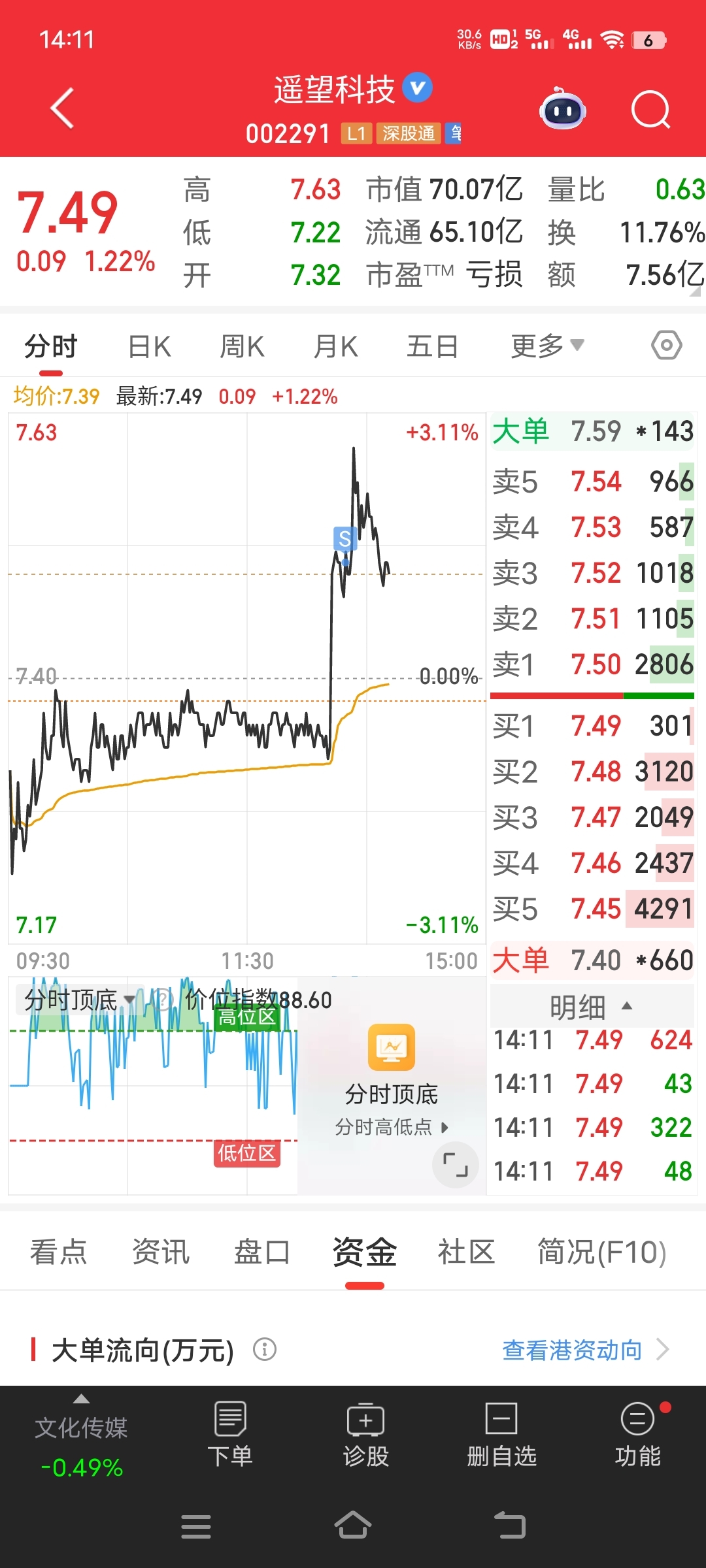 $遥望科技(SZ002291)$ 走了。3个点.祝还在里面的兄弟们发财