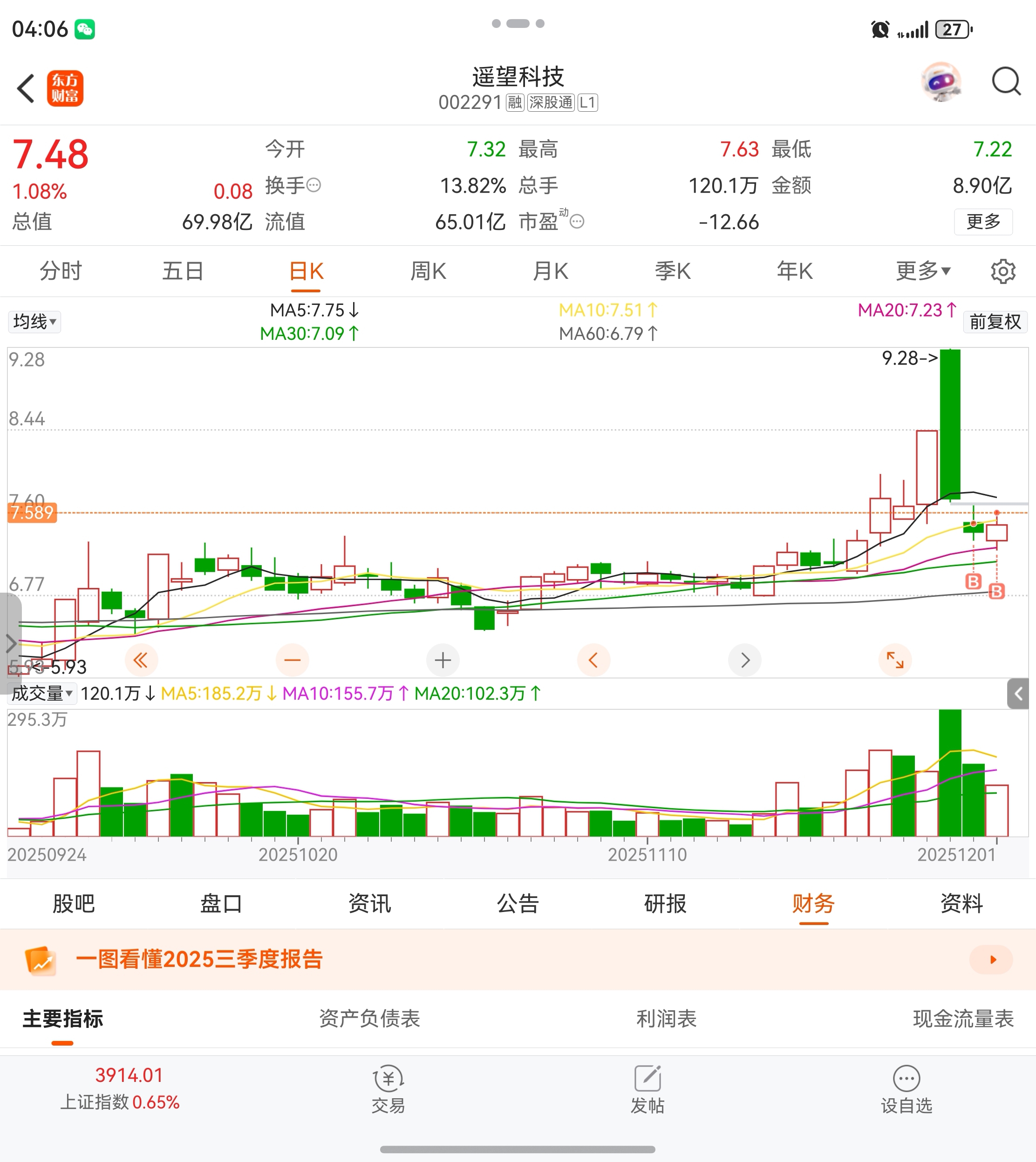 $遥望科技(SZ002291)$ 追高的一天,明天低开仓位加满。
