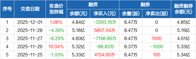 遥望科技:融资净偿还3393.16万元,融资余额4.84亿元(12-01)