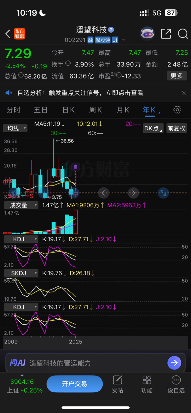 $遥望科技(SZ002291)$ 跌了三年了,才反弹十五个点就熄火了,这是要退市打算吗