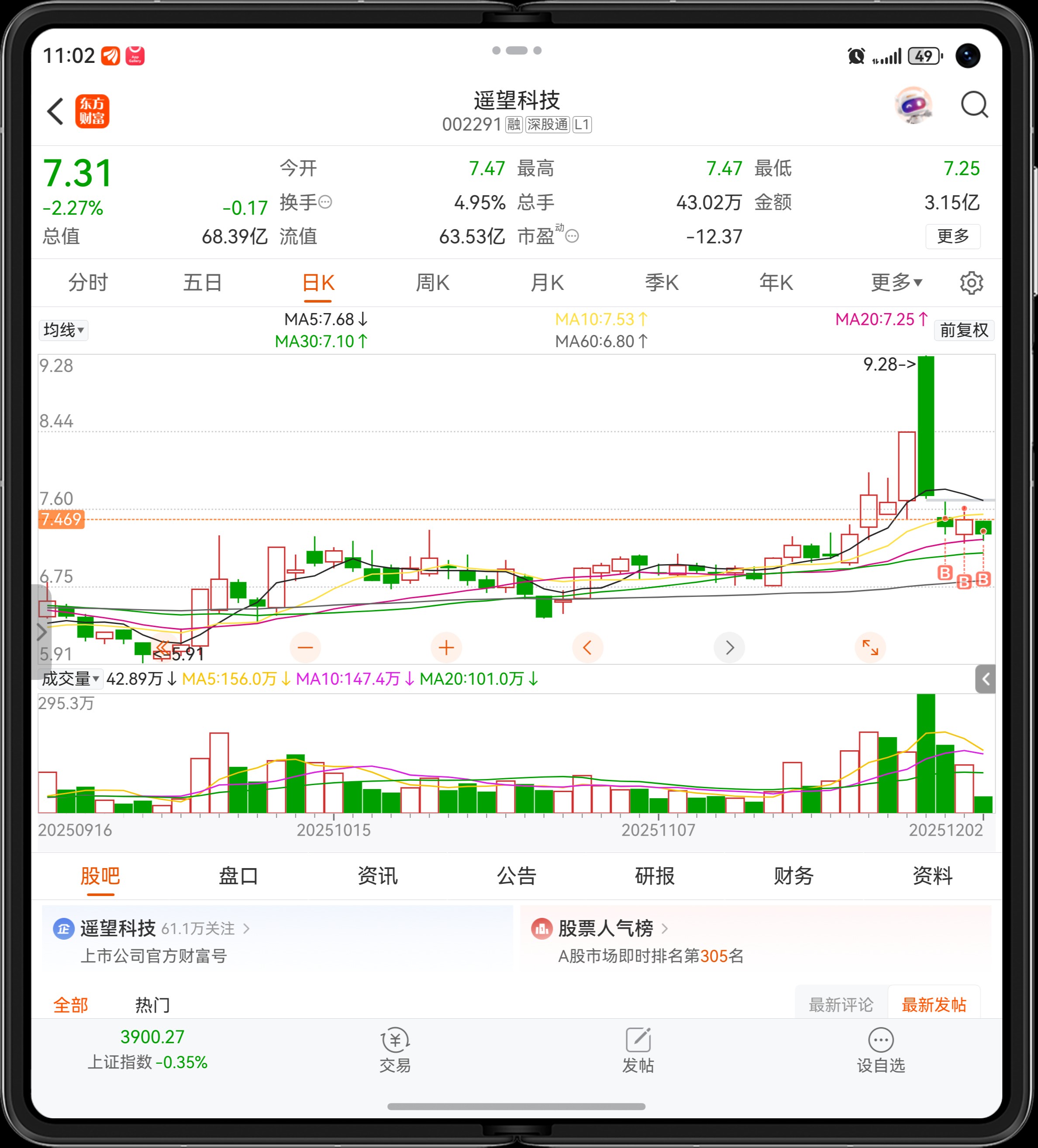 $遥望科技(SZ002291)$ 又是水下游泳呀 还能出来透透气不?