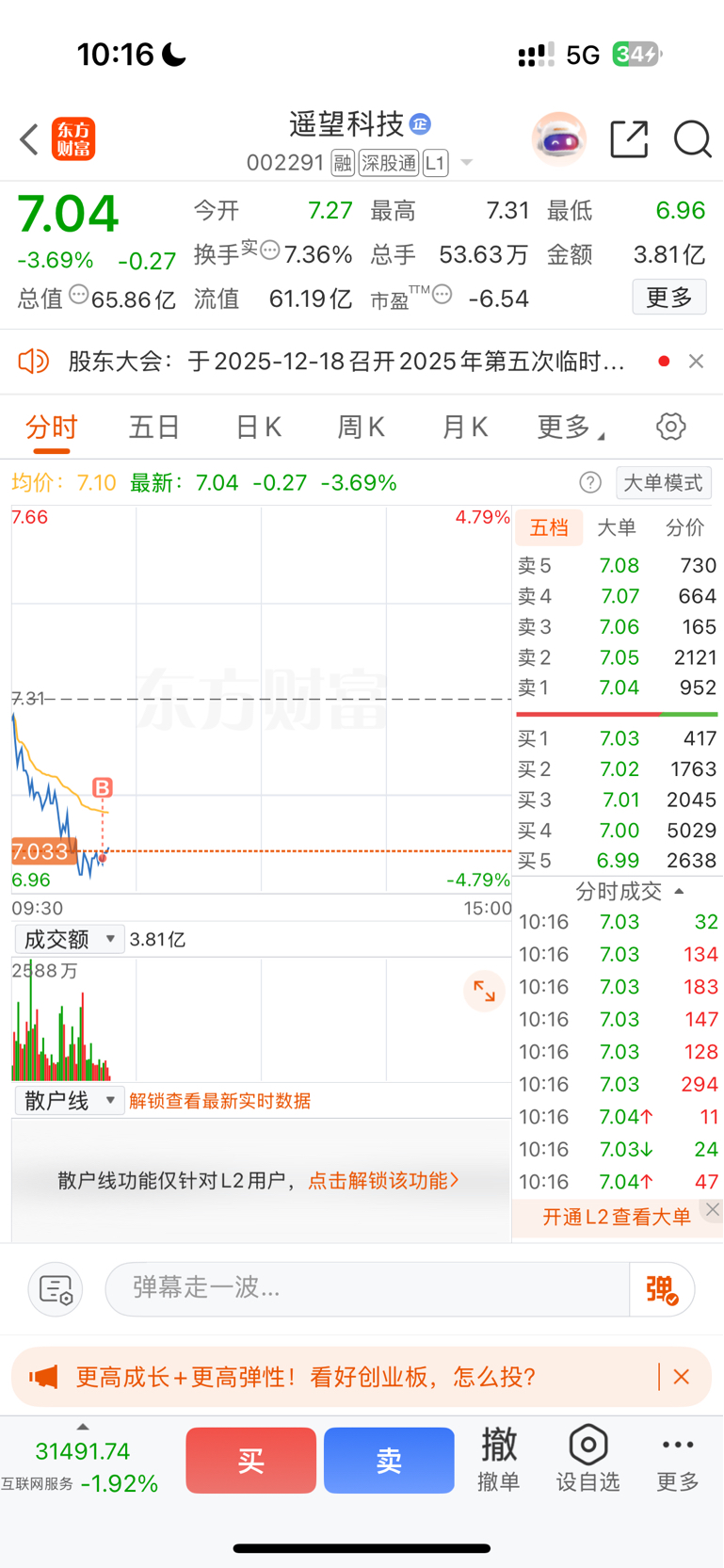 $遥望科技(SZ002291)$ 回撤三十个点触发抄底指令.