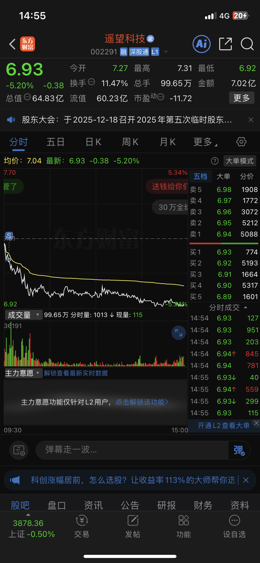 $遥望科技(SZ002291)$ 有和我一样的吧?感觉不行就跑 ,不用带犹豫 不带幻想的? 等企稳 反转信号出现在来!必须割主力的肉