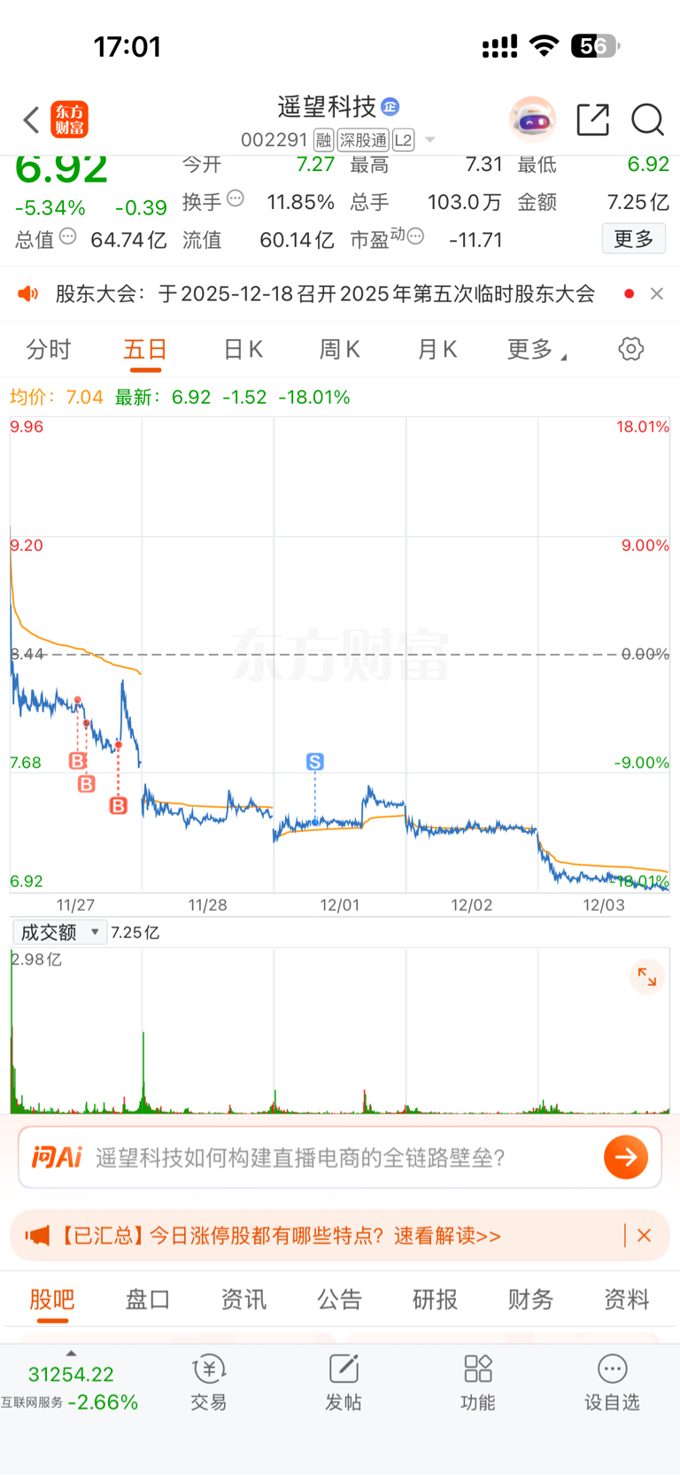 $遥望科技(SZ002291)$ 以为可以抄底 结果差点着抄家 这个狗跌起来真狠 我是真心希望你们格局到现在的能回血