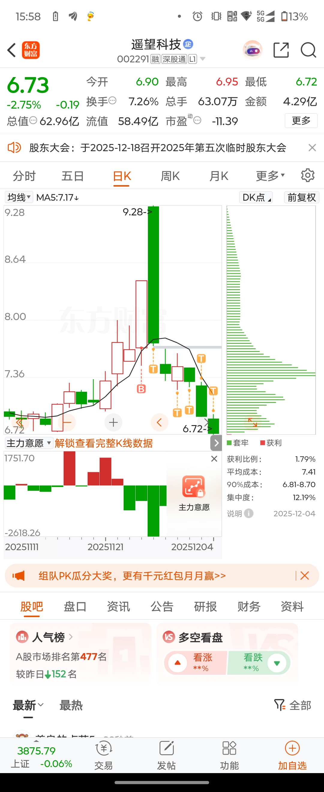 $遥望科技(SZ002291)$ 股海无涯,回头是岸