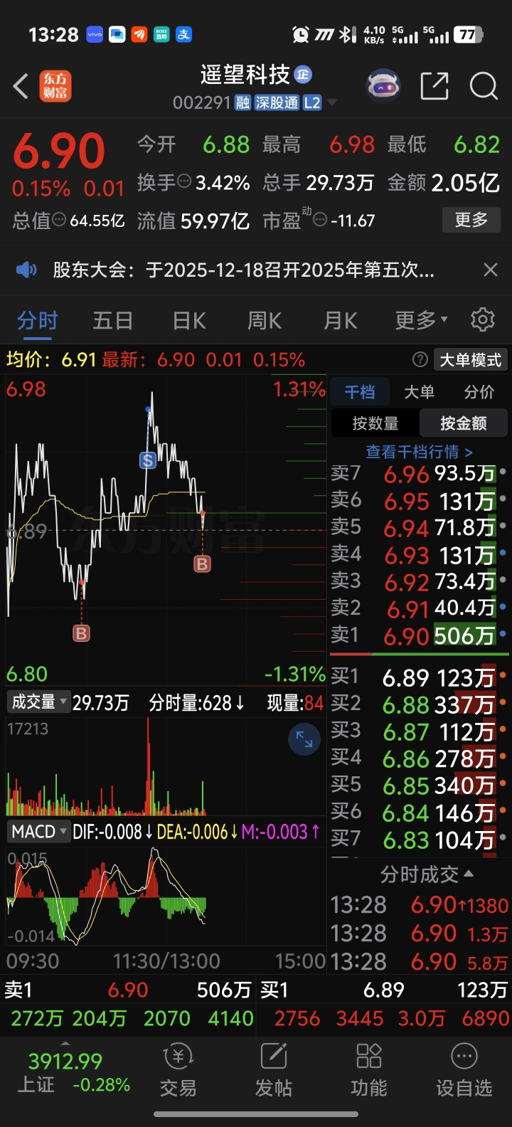 $遥望科技(SZ002291)$ 跌停加