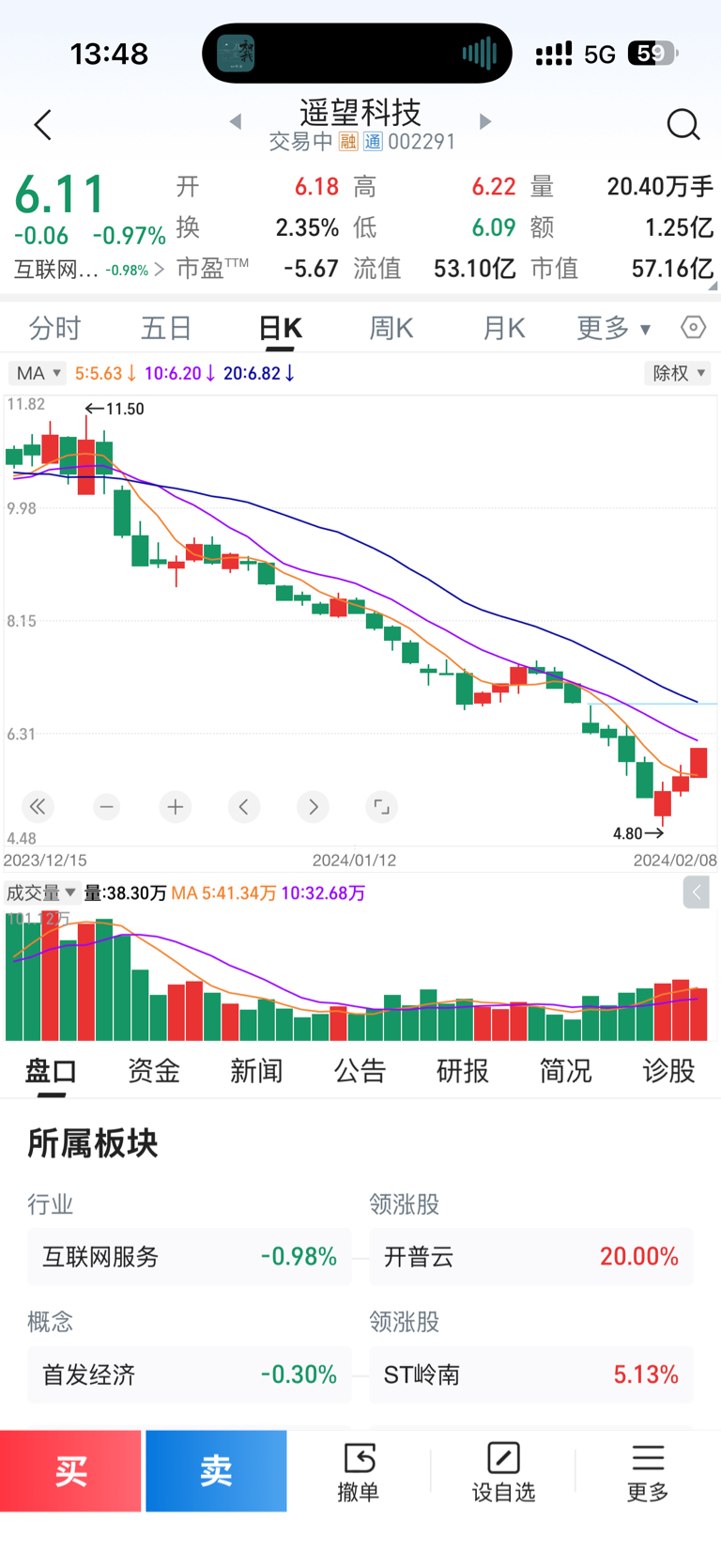 $遥望科技(SZ002291)$ 下跌不言滴,看看去年12月到顶后,一路阴跌 也不大大跌,就磨你