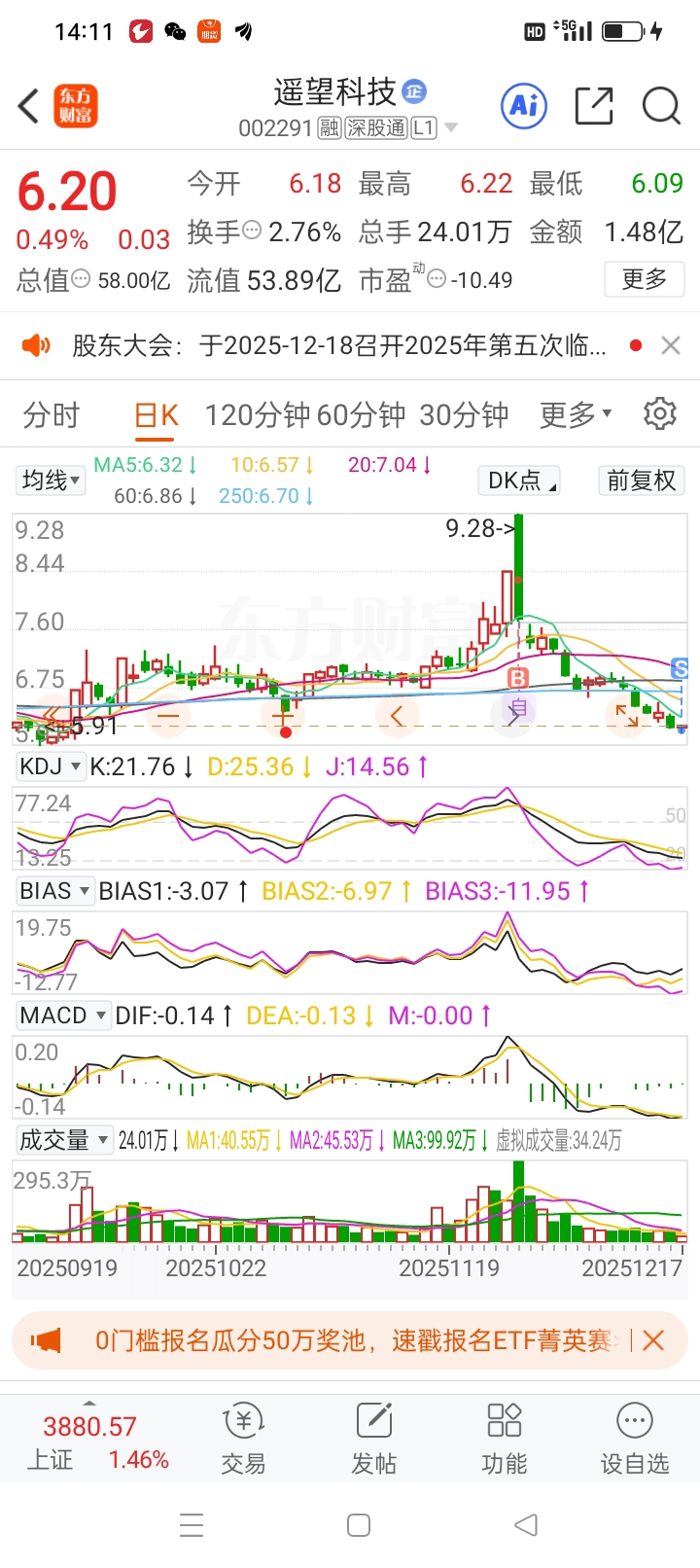 $遥望科技(SZ002291)$ 熬了半个月头发都快熬秃了,熬不住了兄弟们我先走一步了