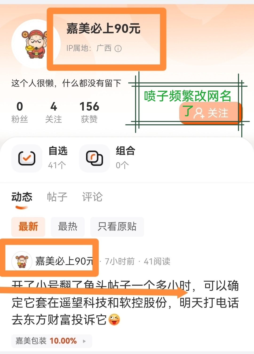 连嘉美包装贴吧里的职业喷子都确定:目前,我是坚定持有遥望科技和软控股份的。我不荐
