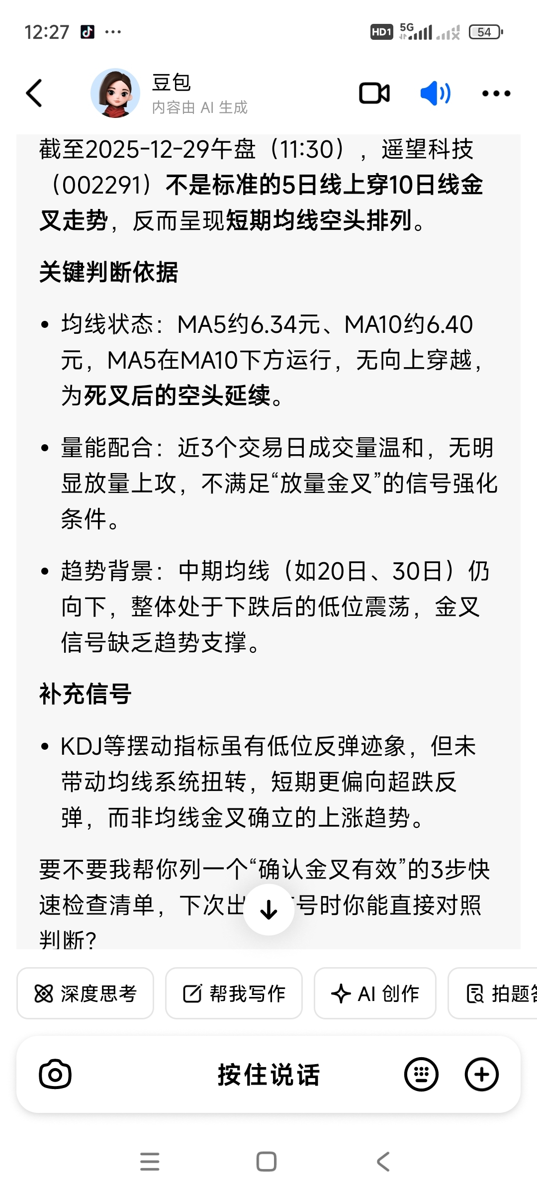 $遥望科技(SZ002291)$ 今天低开震荡,尾盘不收回,前几天均线有拐头的迹象,又走弱了,短期缩量阴跌,走势很弱