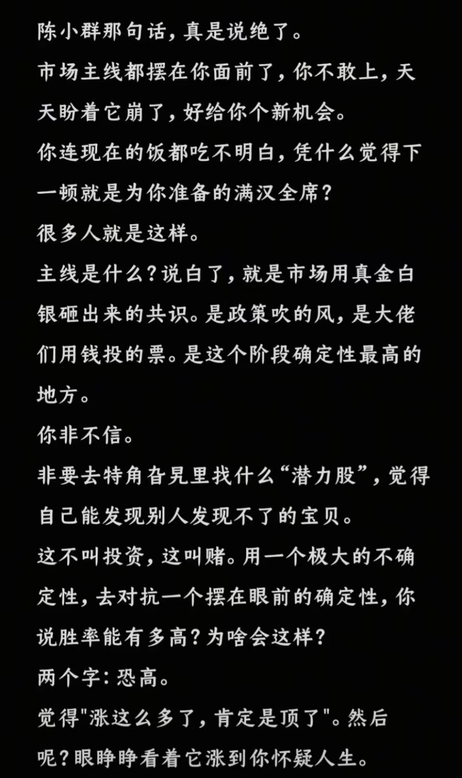 郑重声明:用户在财富号/股吧/博客等社区发表的所有信息(包括但不限于文字、视频、音频、数据及图表)仅代表个人观点,与本网站立场无关,不对您构成任何投资建议,据此操作风险自担。请勿相信代客理财、免费荐股和炒股培训等宣传内容,远离非法证券活动。请勿添加发言用户的手机号码、公众号、微博、微信及QQ等信息,谨防上当受骗!