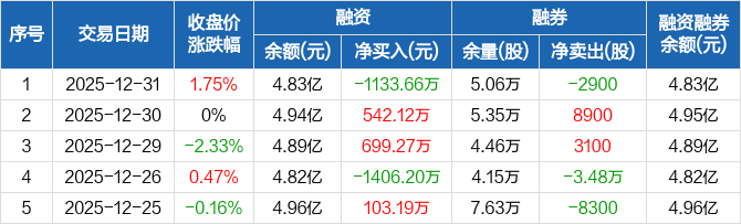 遥望科技:融资净偿还1133.66万元,融资余额4.83亿元(12-31)