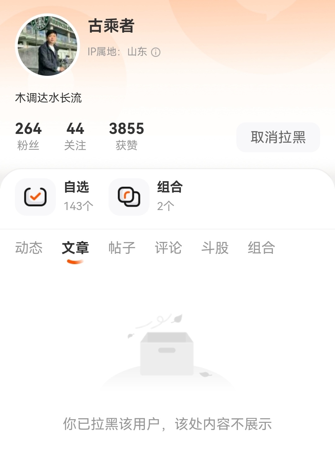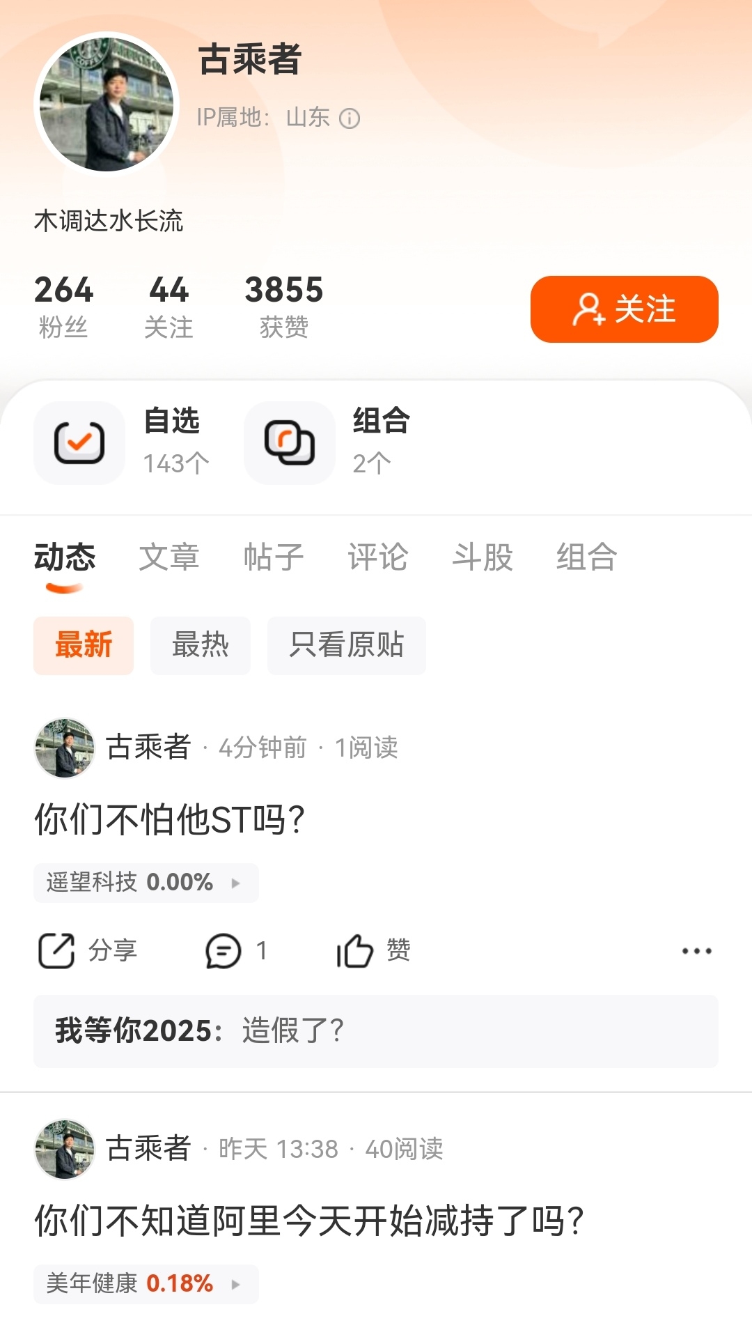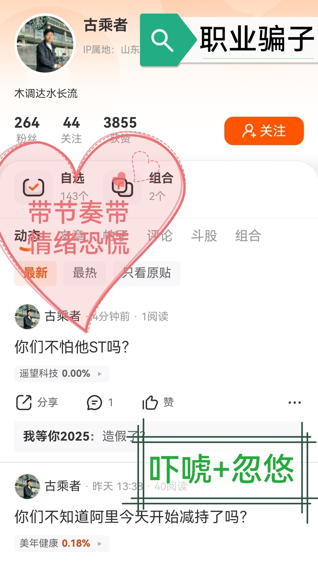 “古乘者”这个黑粉加我的关注,就是为了来留言带情绪恐慌。它是不是庄托“大鱼怕老头