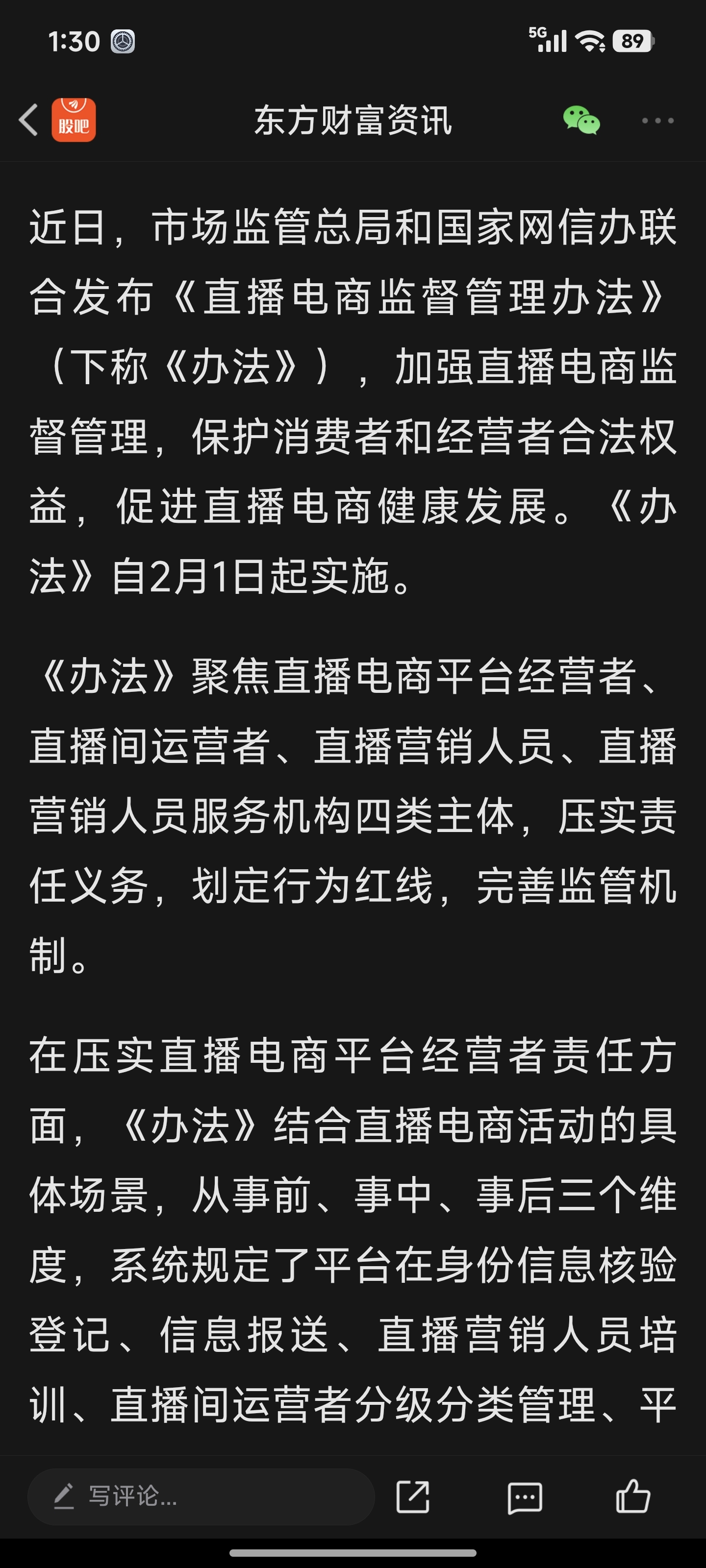 $遥望科技(SZ002291)$ 直播电商监督管理办法终于出台了。