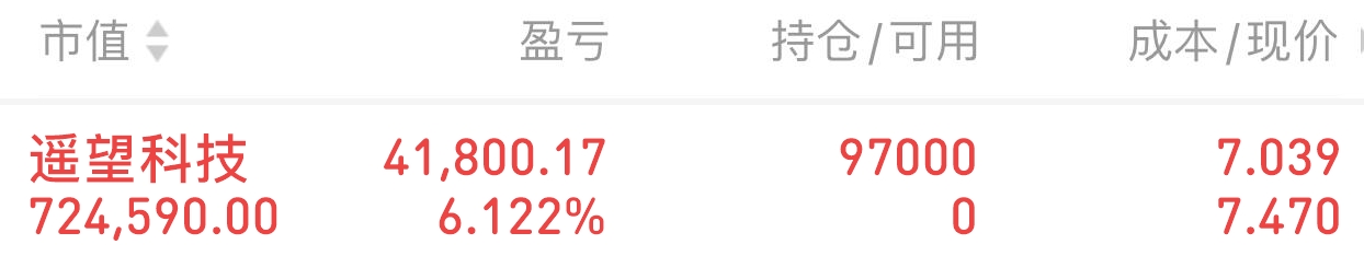 $遥望科技(SZ002291)$ 买了不多,本来想加仓,来不及。