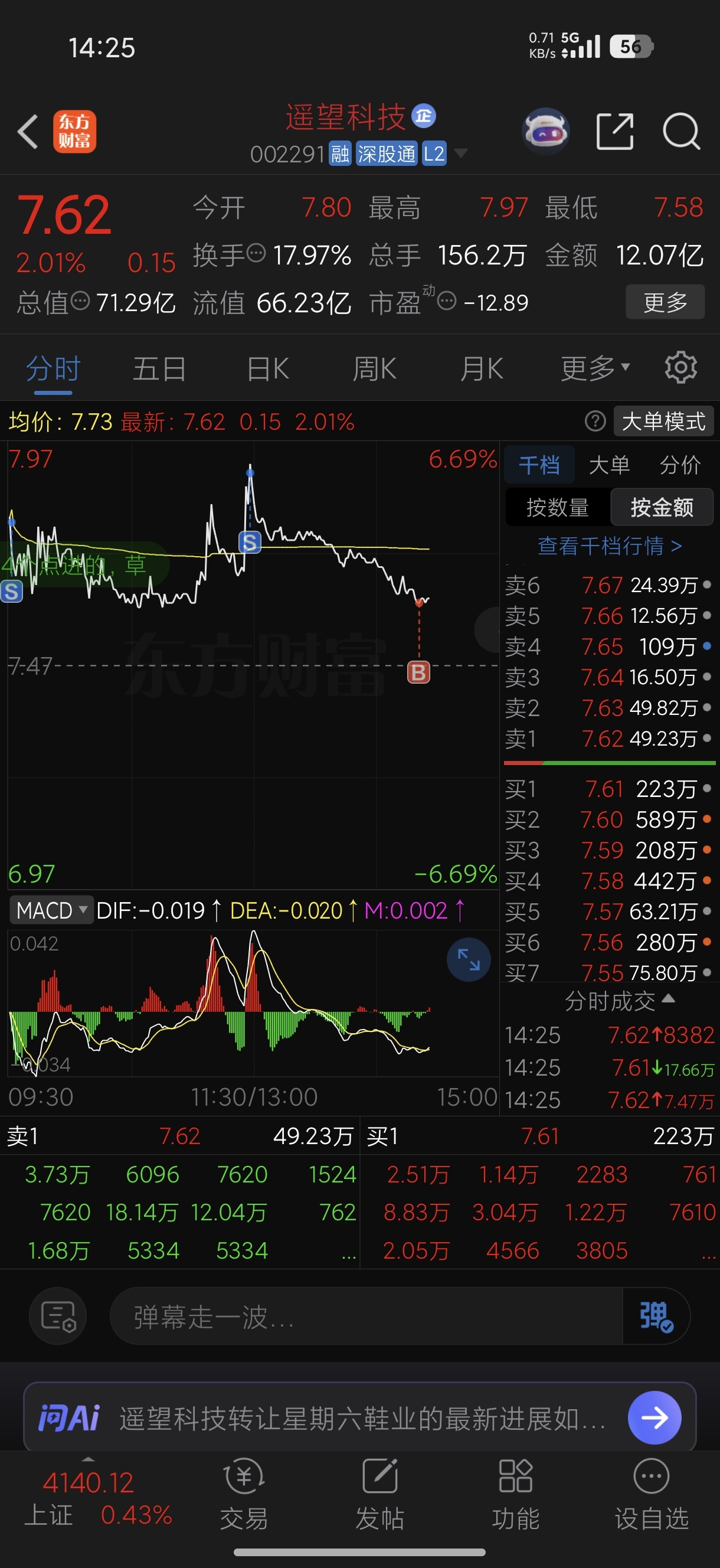 $遥望科技(SZ002291)$ 上午差一分钱没有买进去……