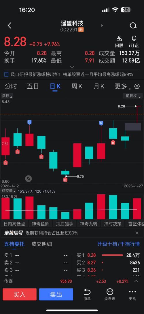 $遥望科技(SZ002291)$  得散户者得天下,扶好了坐稳