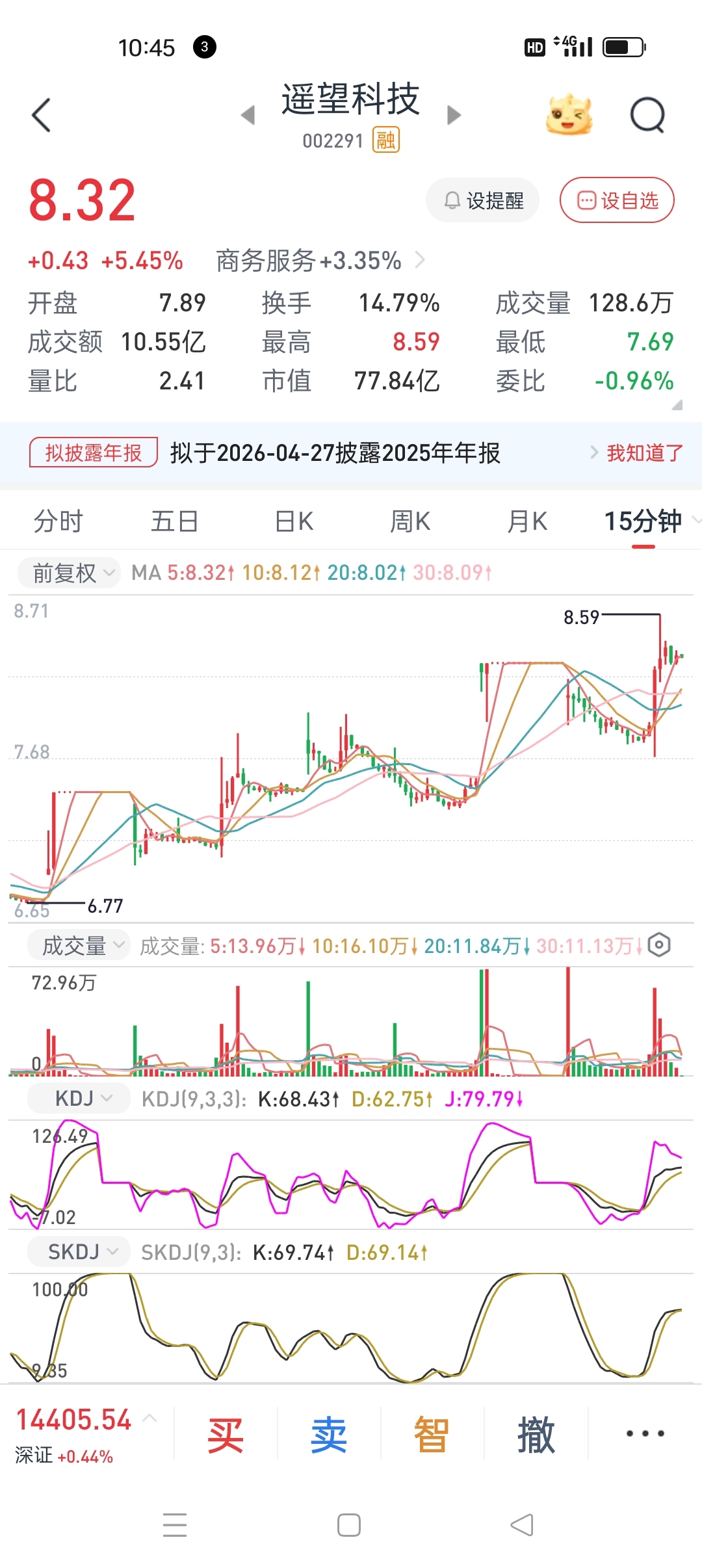 $遥望科技(SZ002291)$ 这主力的操盘手法,15分钟K线图