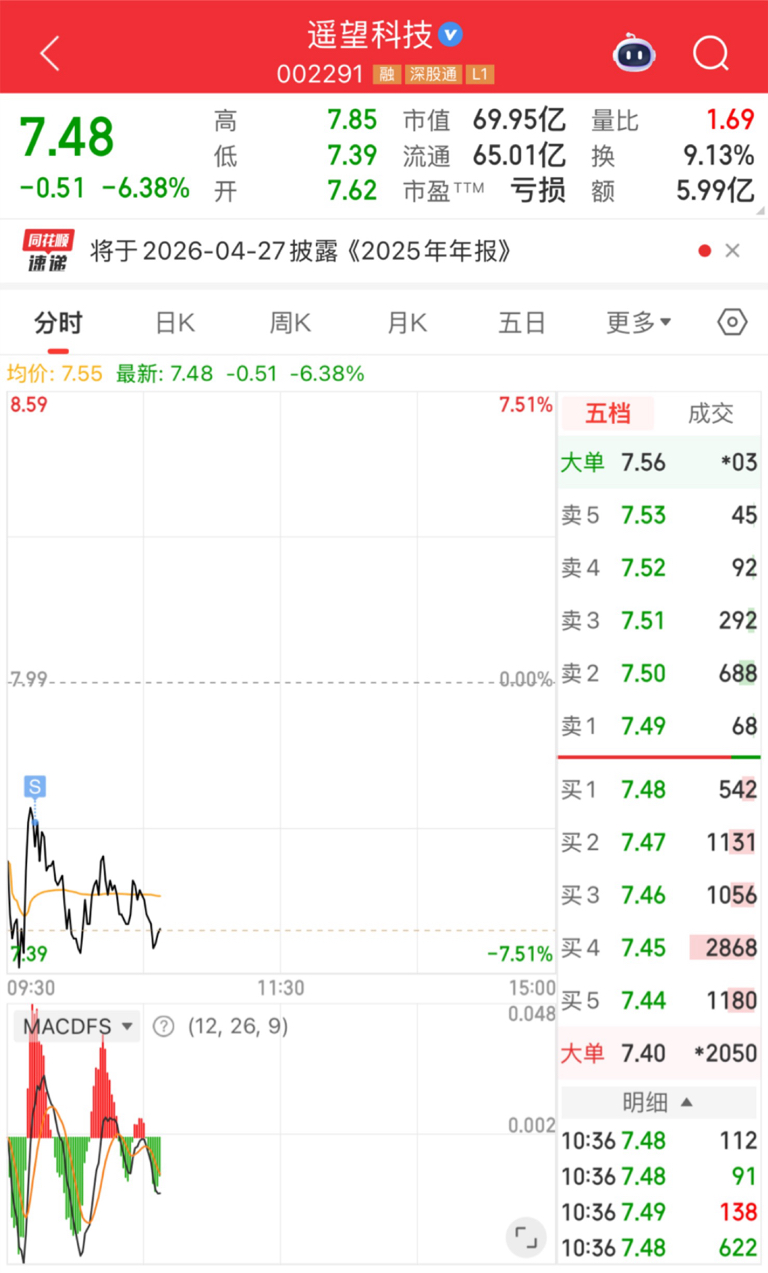 $遥望科技(SZ002291)$ 连续两天大单猛砸,今天终于小单跟砸了,真不知道前面是怎么涨停的,拉黑了,这么小家子气的庄