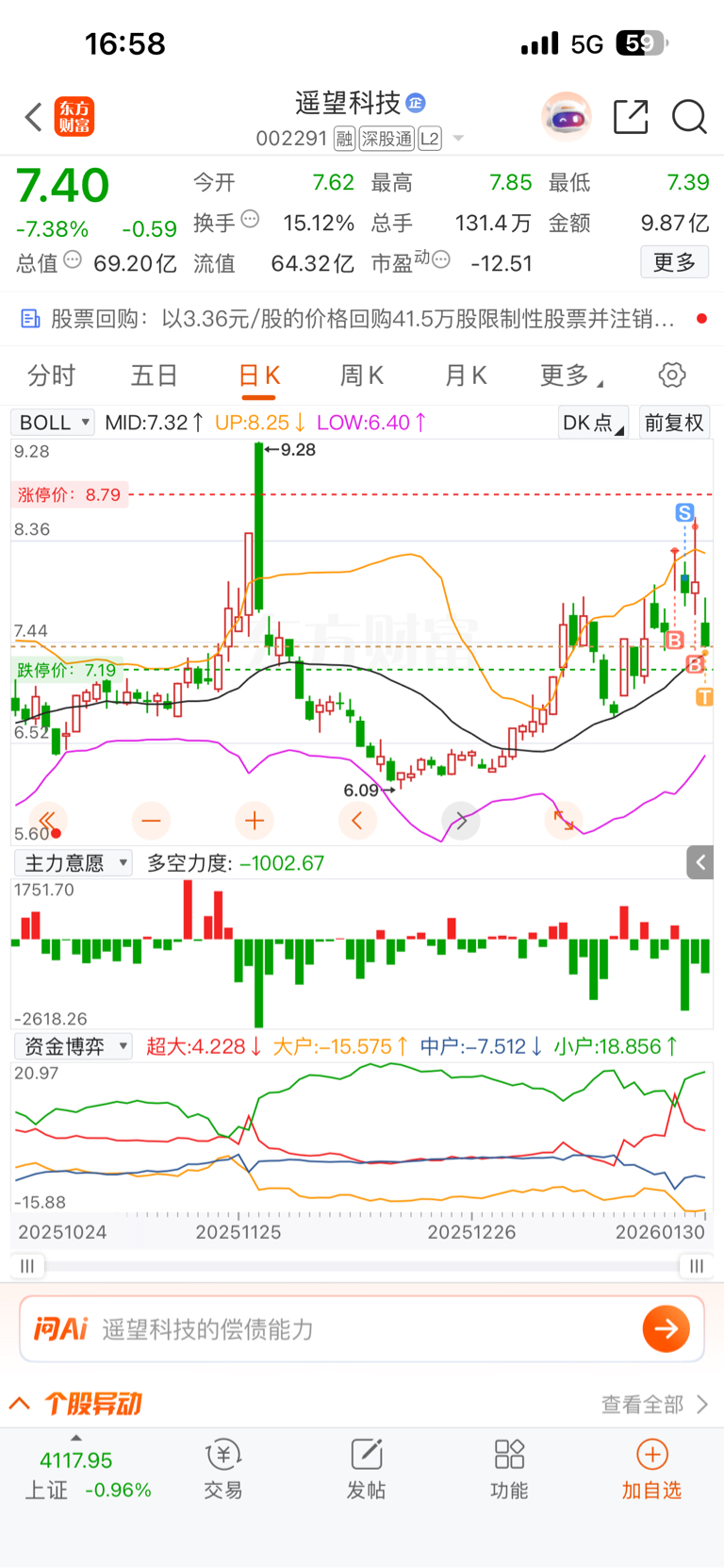 $遥望科技(SZ002291)$ 这局面怎么解,每次都买在最高点,然后最低点卖掉