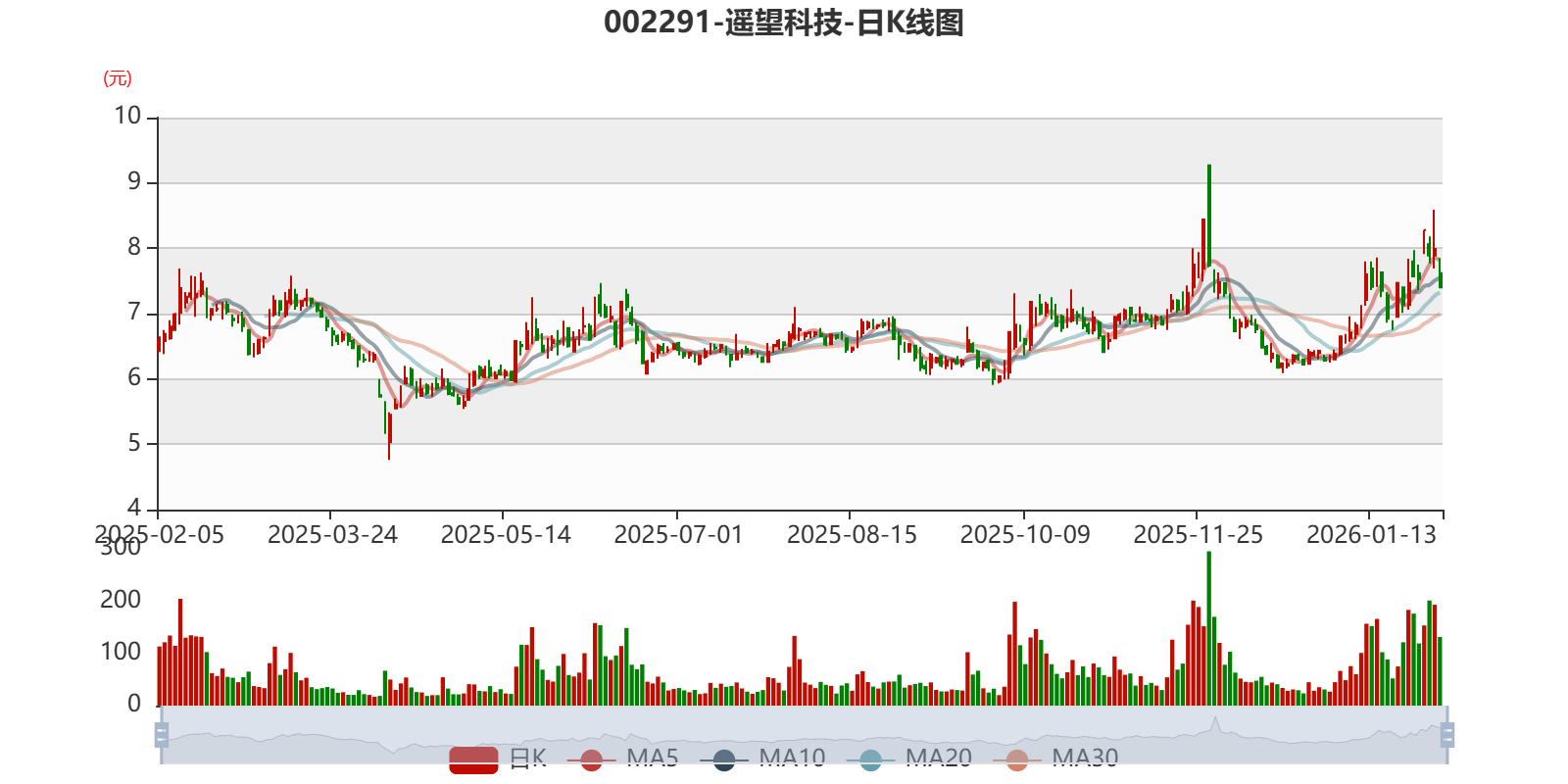 中证智能财讯遥望科技(002291)1月30日晚间披露2025年度业绩预告,预计2025年归母净利润亏损5.5亿元至6.8亿元,上年同期亏损10.01亿元;扣非净利润亏损5.5亿元至6.8亿元,上年同期亏损10.32亿元;基本每股收益-0.59元/股至-0.73元/股。以最新收盘价计算,市净率(LF)约2.29倍,市销率(TTM)约2.05倍。