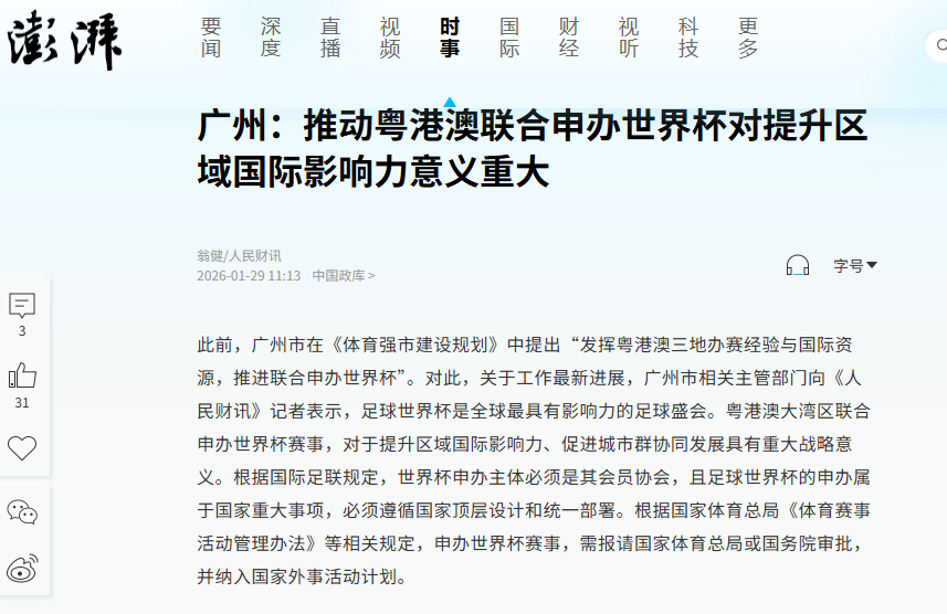 港澳粤申办2038年世界杯遥望是港澳粤自贸区概念,