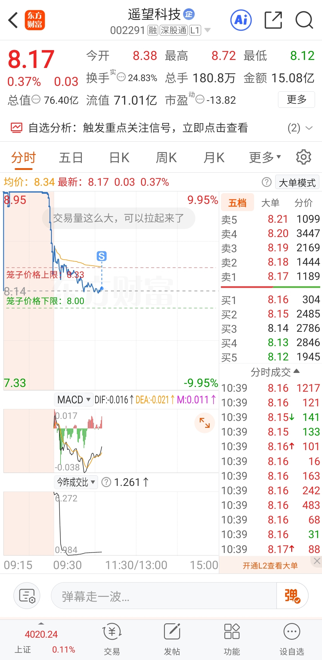 $遥望科技(SZ002291)$ 我卖了,可以拉了