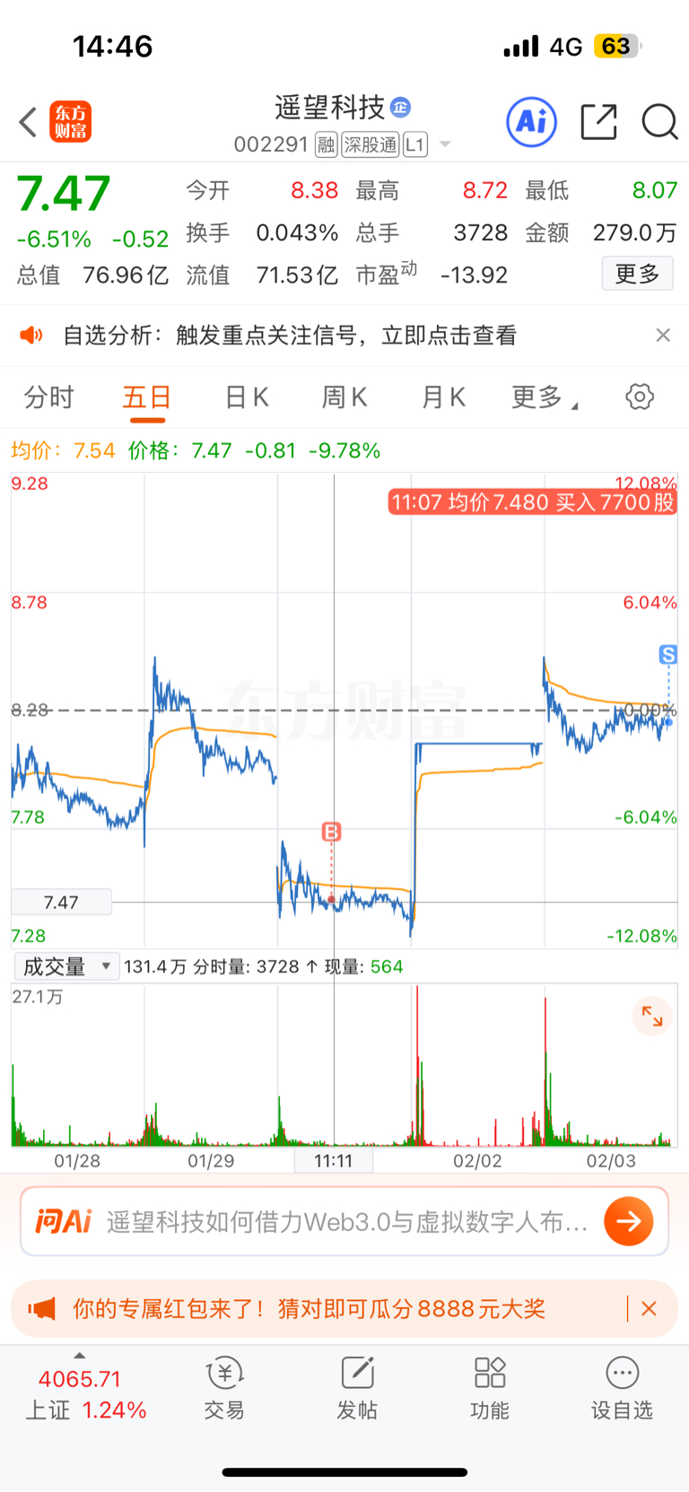 $遥望科技(SZ002291)$ 仓位全出,祝留下的吃肉,明天高开