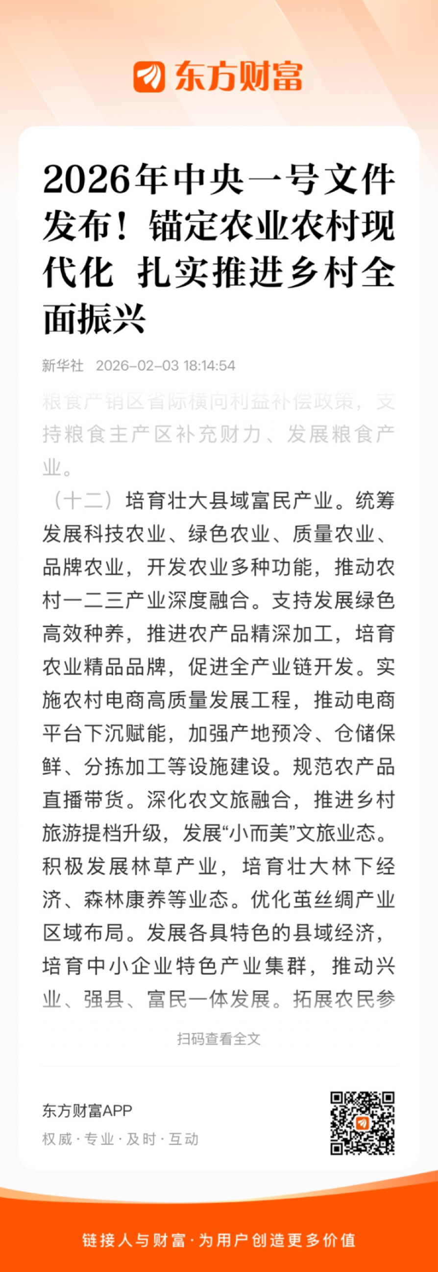 $遥望科技(SZ002291)$ 推进农产品精深加工,培育农业精品品牌,促进全产业链开发。实施农村电商高质量发展工程,推动电商平台下沉赋能,加强产地预冷、仓储保鲜、分拣加工等设施建设。规范农产品直播带货。