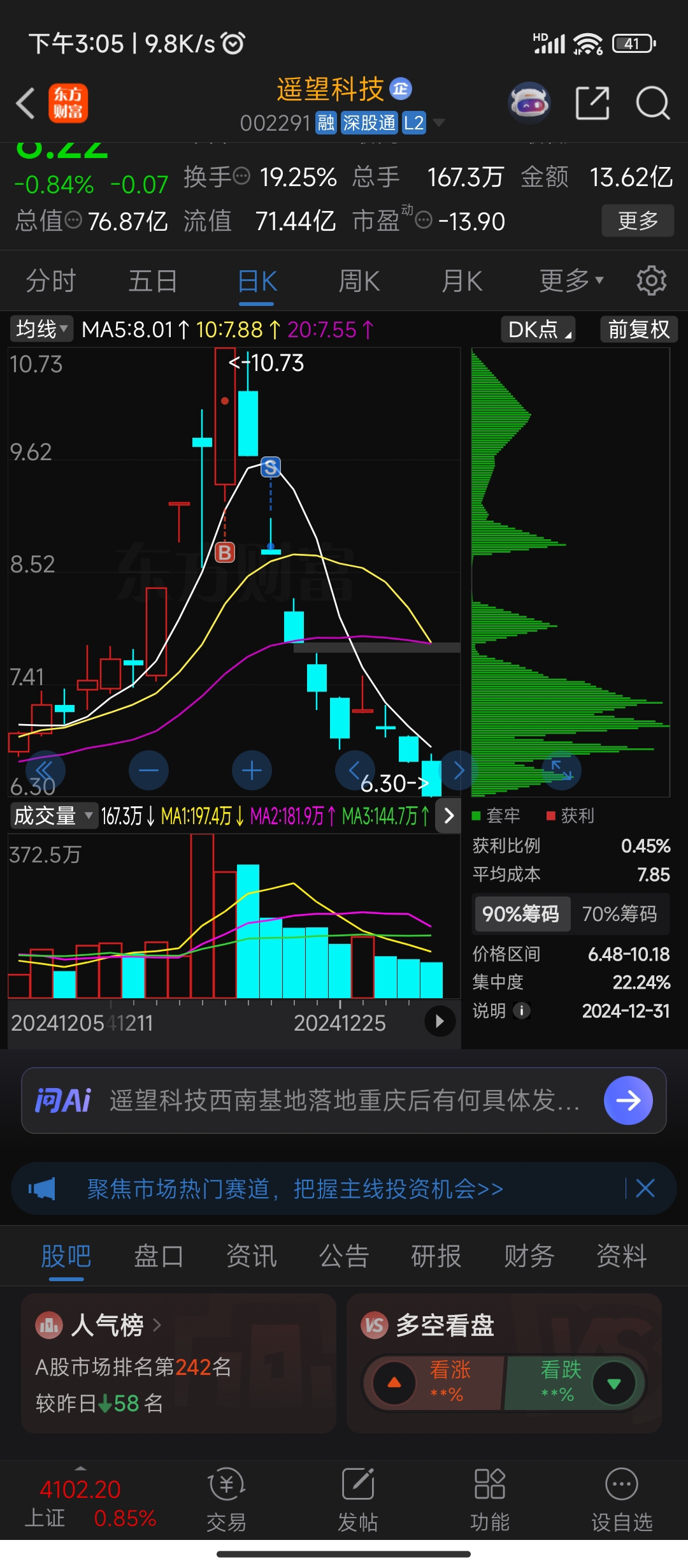 $遥望科技(SZ002291)$ 你们群总有个外号叫枯竭哥,就是来自于遥望一战,记忆犹新。