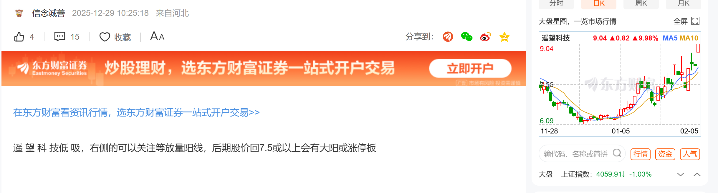 温馨提示: 1.根据《证券法》规定,禁止编造、传播虚假信息或者误导性信息,扰乱证券市场;2.用户在本社区发表的所有资料、言论等仅代表个人观点,与本网站立场无关,不对您构成任何投资建议。用户应基于自己的独立判断,自行决定证券投资并承担相应风险。《东方财富社区管理规定》
