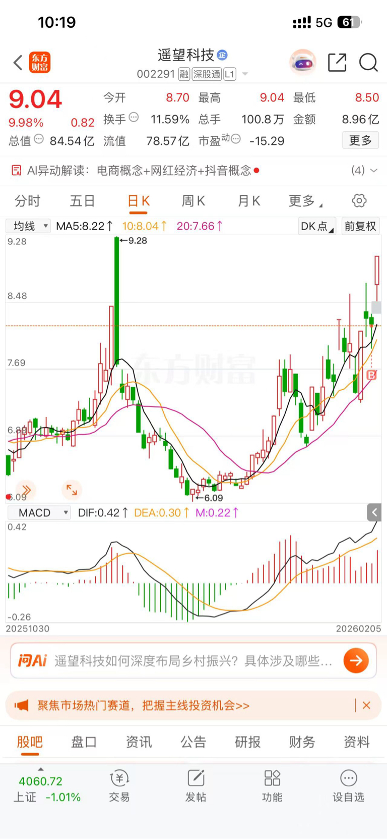 $遥望科技(SZ002291)$ $天润科技(SZ920564)$ 最近操作记录短线选股依旧没有任何没问题,都是属于还不错的强势股!选股这一点我无比自信!喷子你随便喷呗!当然运气也是好了一些!但是也有依旧卖不好的票。还是得保持耐心,看好就多点点耐心