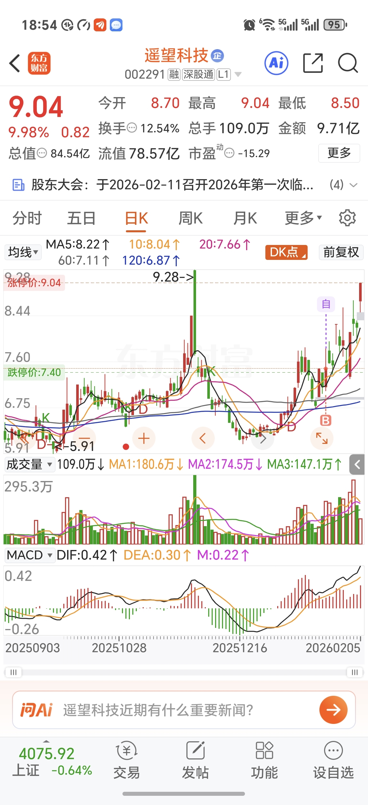 $遥望科技(SZ002291)$ 主力洗盘有一套 了,不知道能不能连板