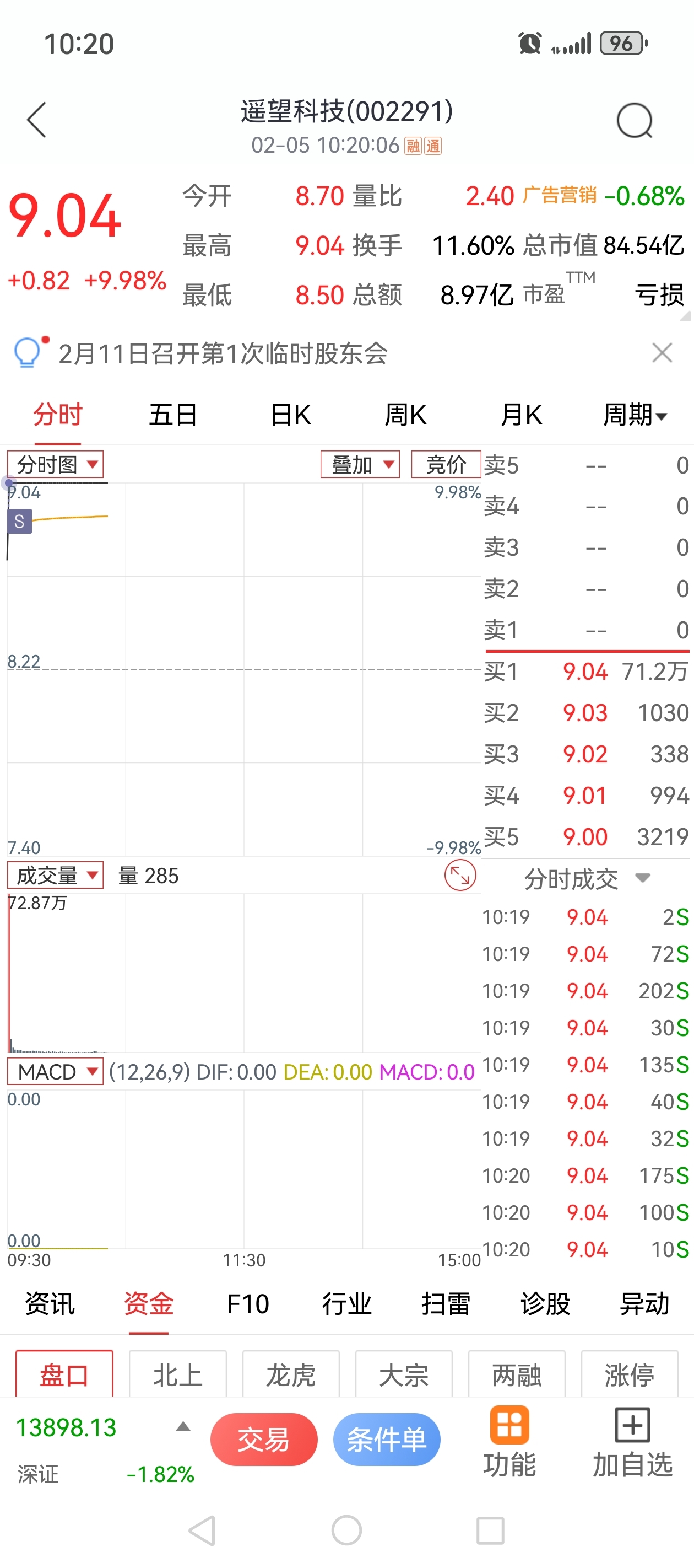 $遥望科技(SZ002291)$ 昨天还以为卖飞了