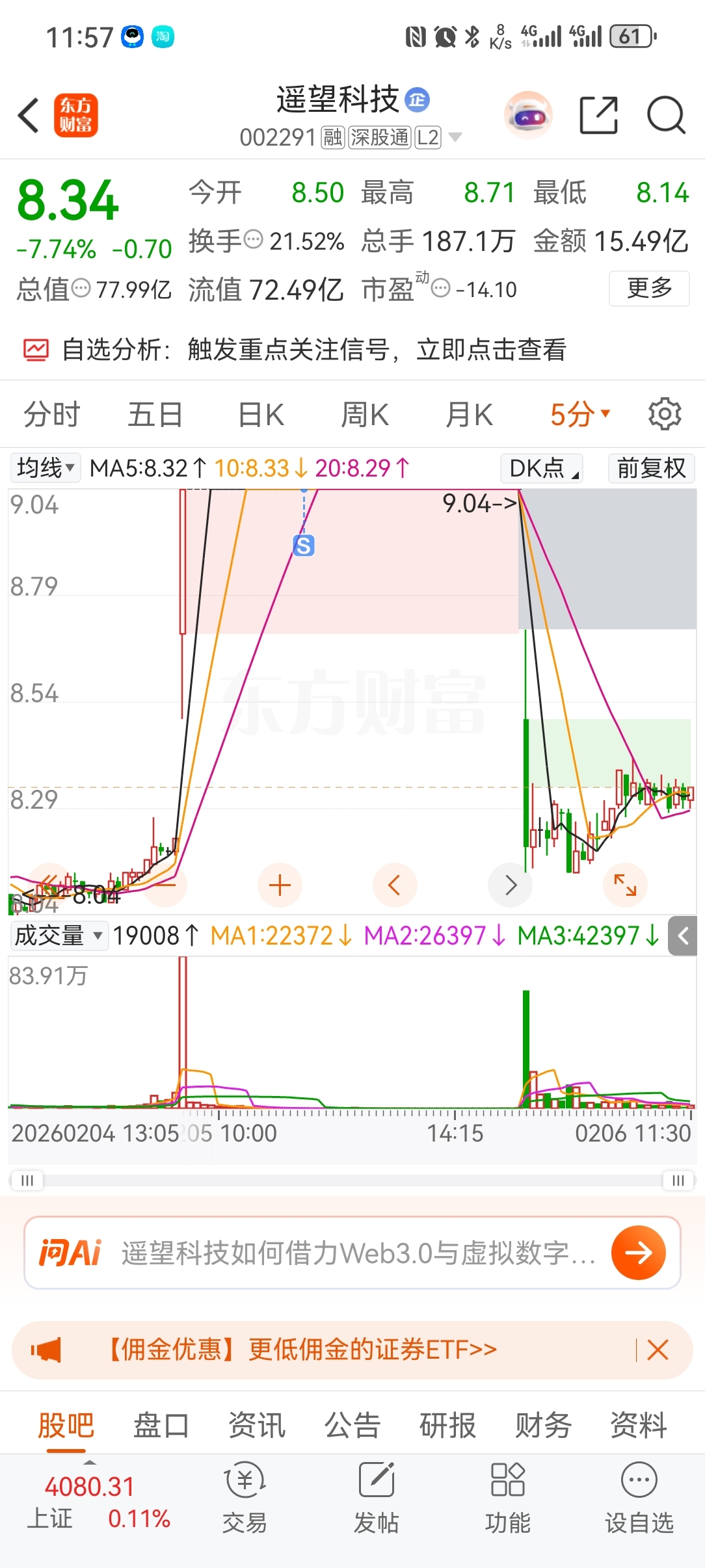 $遥望科技(SZ002291)$ 周一低开再找机会接回