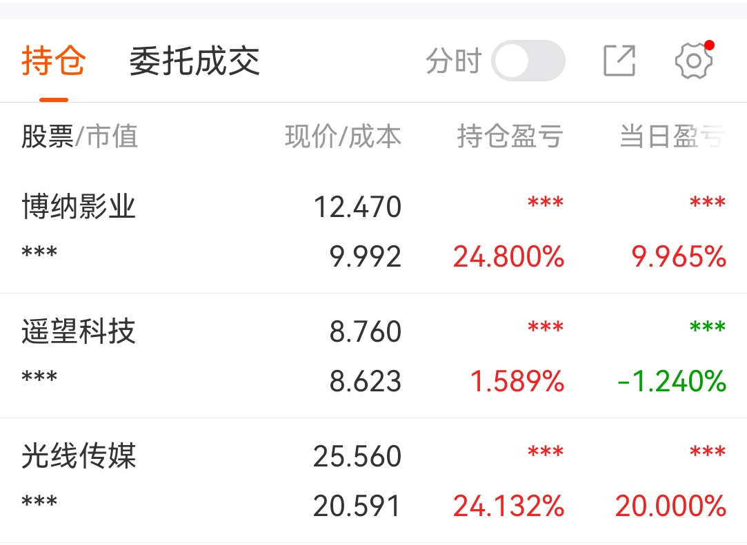前两天涨停板清了,全仓去看影业到今天吃了20CM。遥望昨天买回来一层不到,丝毫不