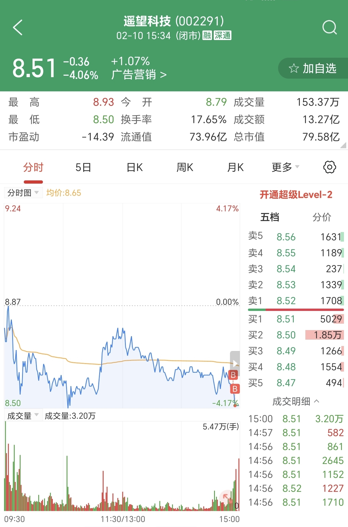 $遥望科技(SZ002291)$ 尾盘买了十几万,你们觉得明天亏还是赚