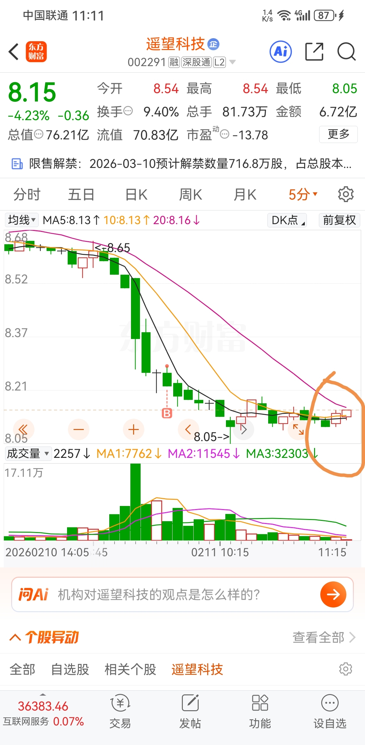 $遥望科技(SZ002291)$ 黄金坑以到,这个位置会放点量拉上去,因为韭菜都跑了