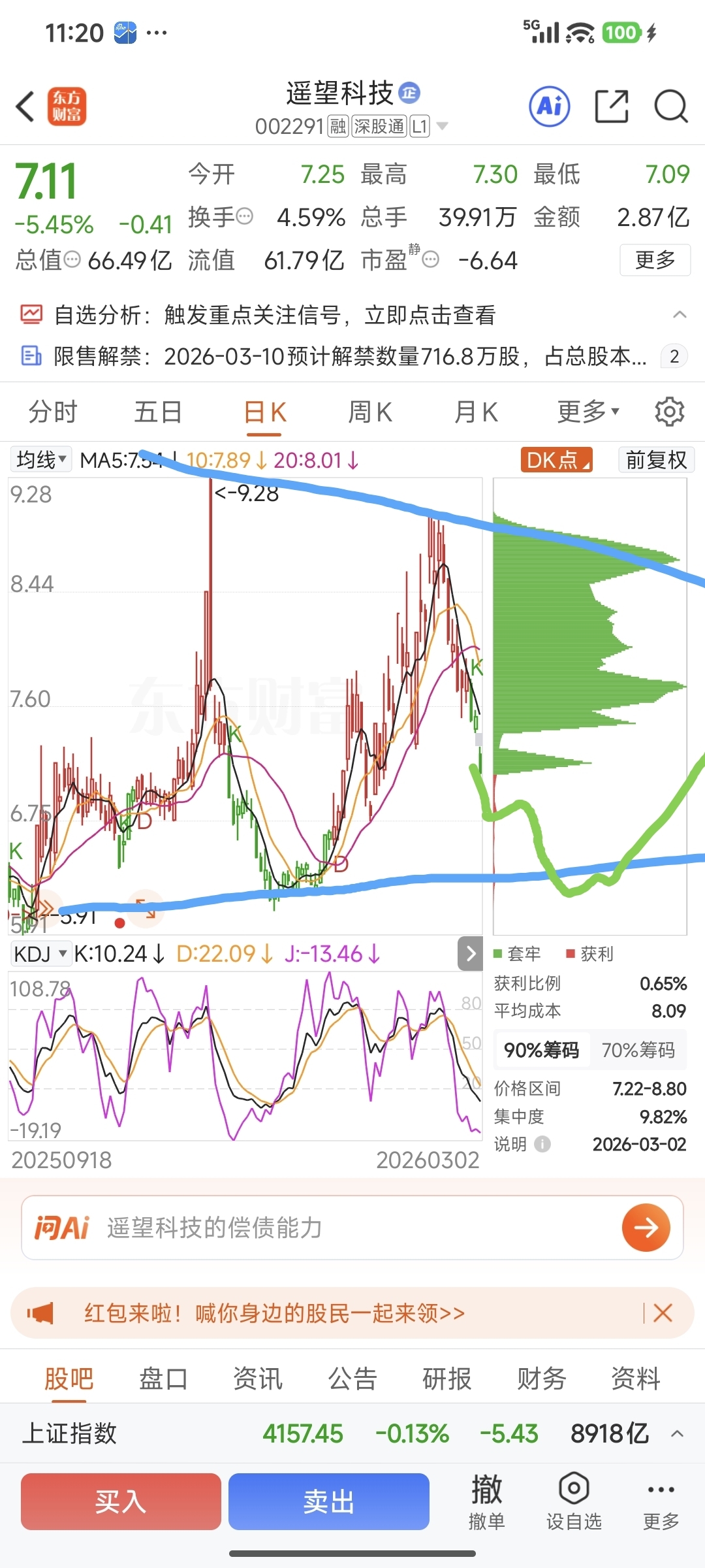 $遥望科技(SZ002291)$ 绝望科技等破7元后,下周初6.2~6.5可少量买入,中线看回报,应该比银行存款年利率高,而且可回避三月中旬股市回踩风险。