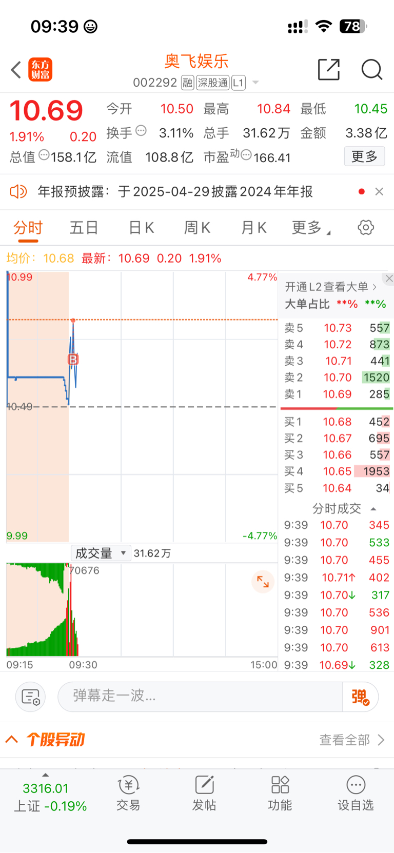 $奥飞娱乐(SZ002292)$ 有比我高的不?