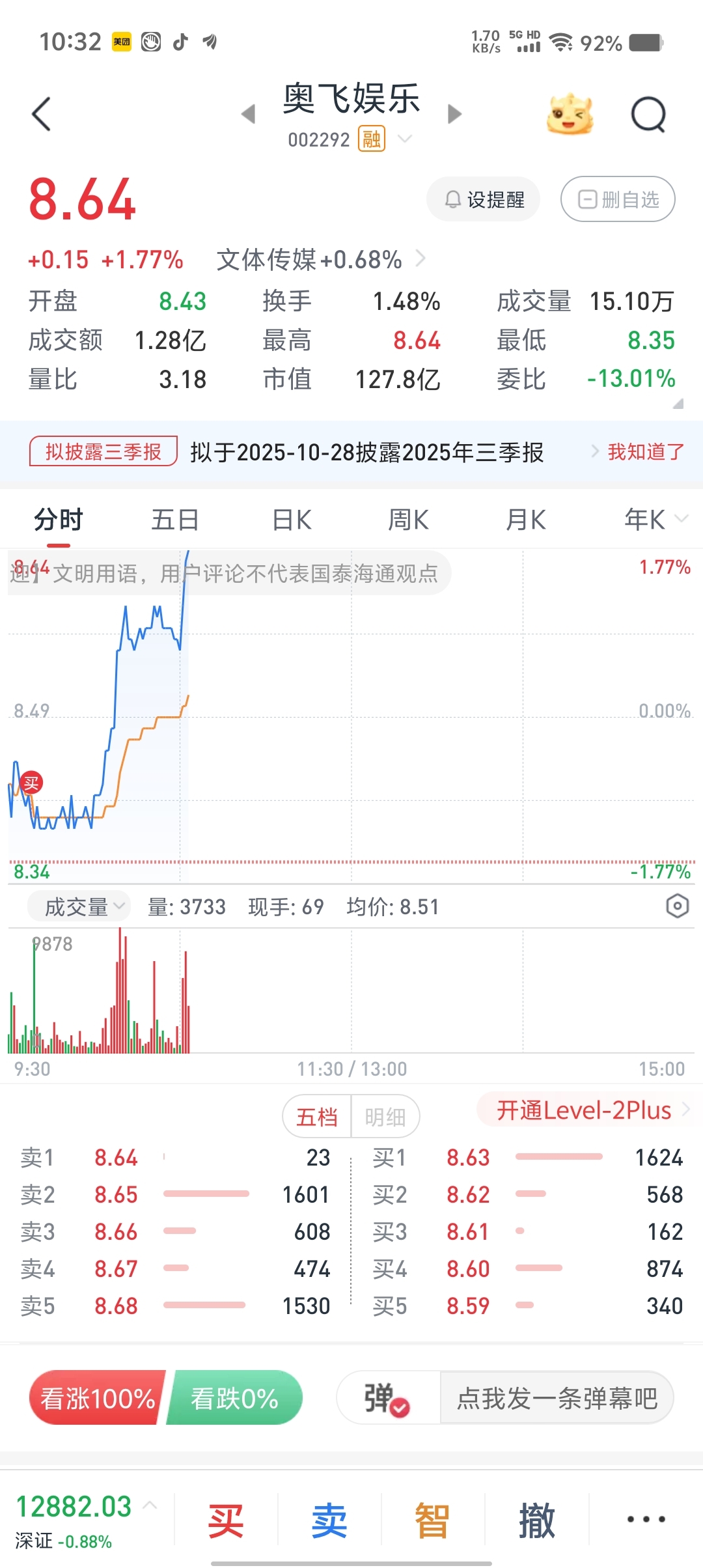 $奥飞娱乐(SZ002292)$ 35接回我飞哥这么给面?